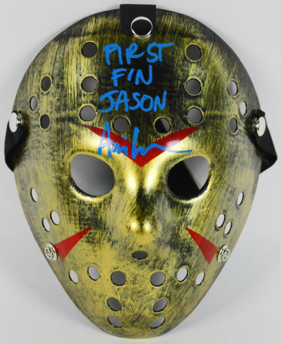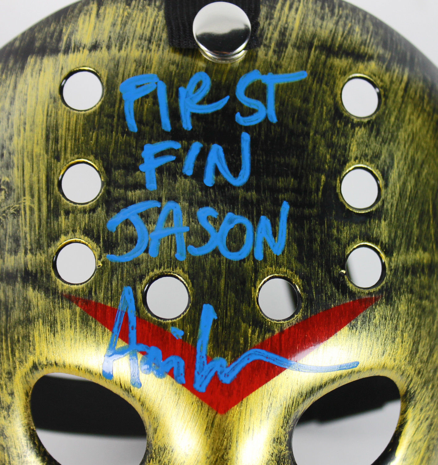 Custom "Jason" Mask. Hand-signed and inscribed in blue paint pen by Ari Lehman.