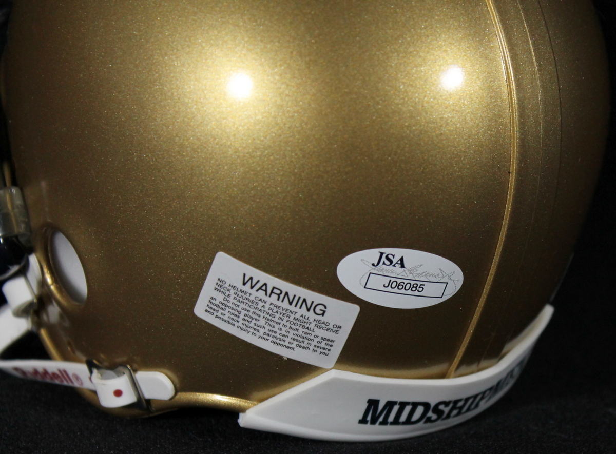 Riddell Navy mini-helmet hand-signed in black felt tip pen by Roger Staubach (Cowboys HOF). The autograph includes an official James Spence Authentication (JSA) hologram and matching COA for authenticity purposes.