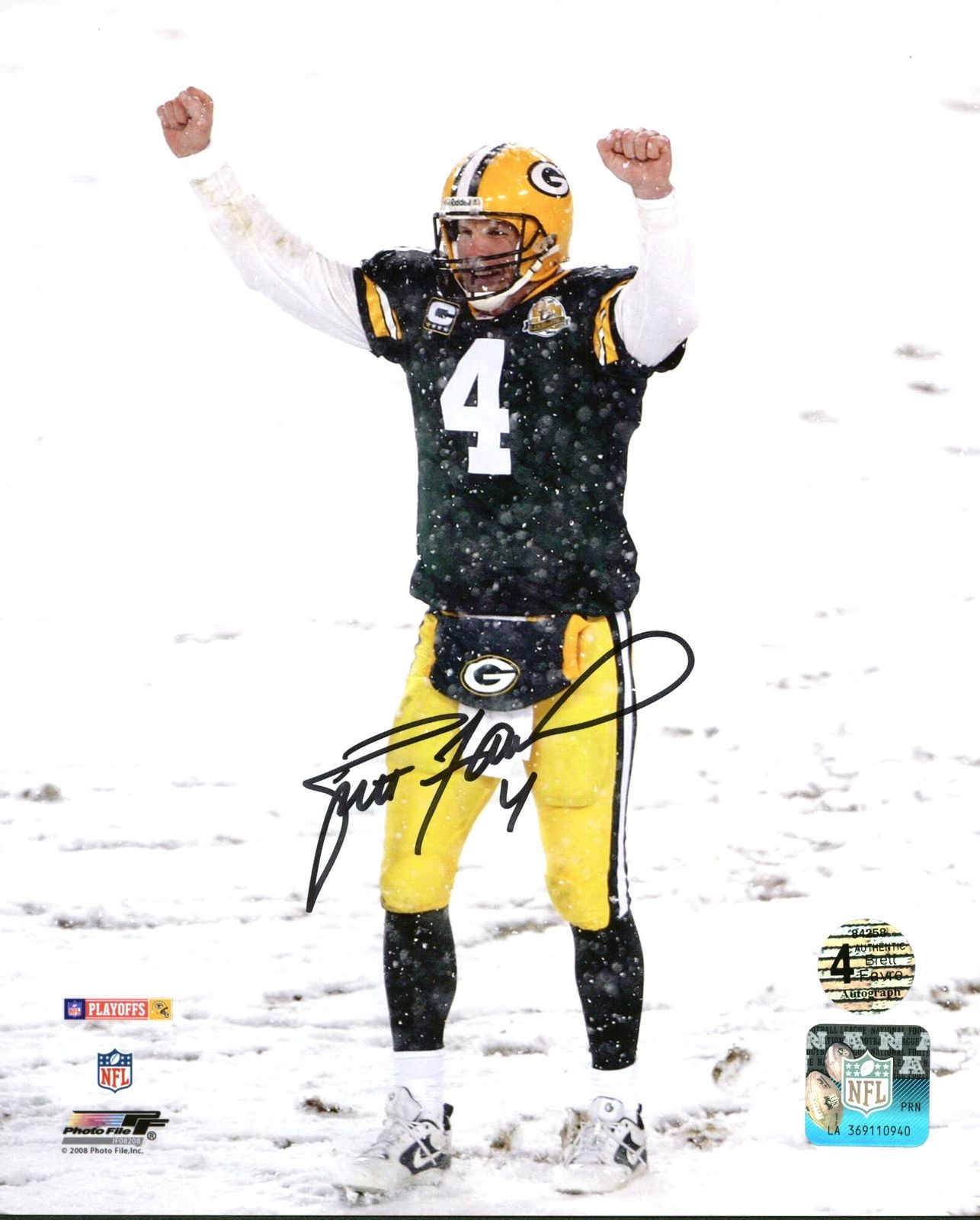 The autograph includes a Brett Favre hologram and COA for authenticity purposes.