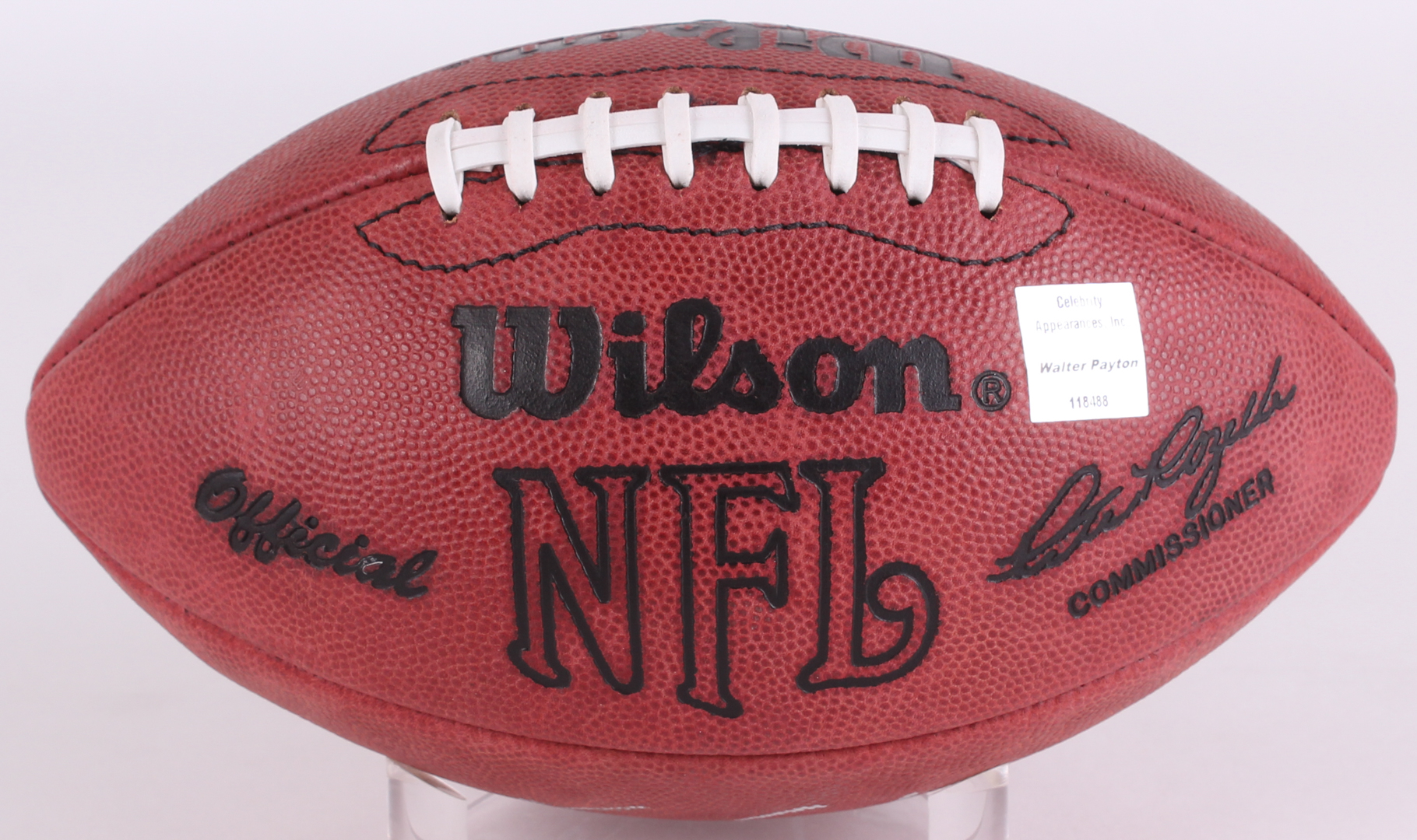 Wilson official NFL game-ball has been hand-signed in silver paint pen by Walter Payton (D. 1999, HOF).