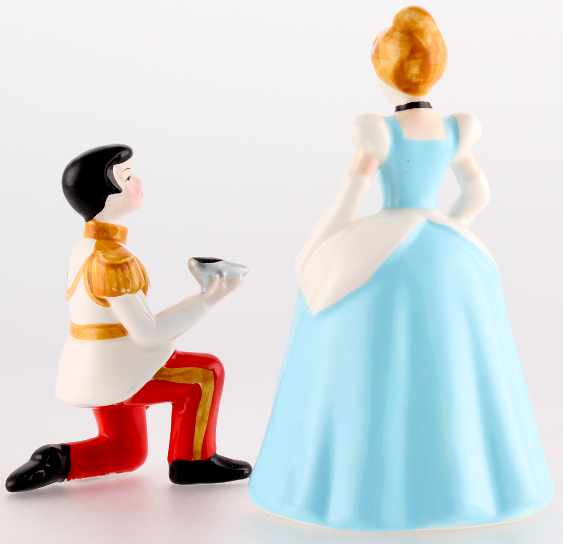 Vintage 1970's Cinderella and Prince Charming ceramic figurine from Walt Disney Productions measures 5.5" and 4" in size.