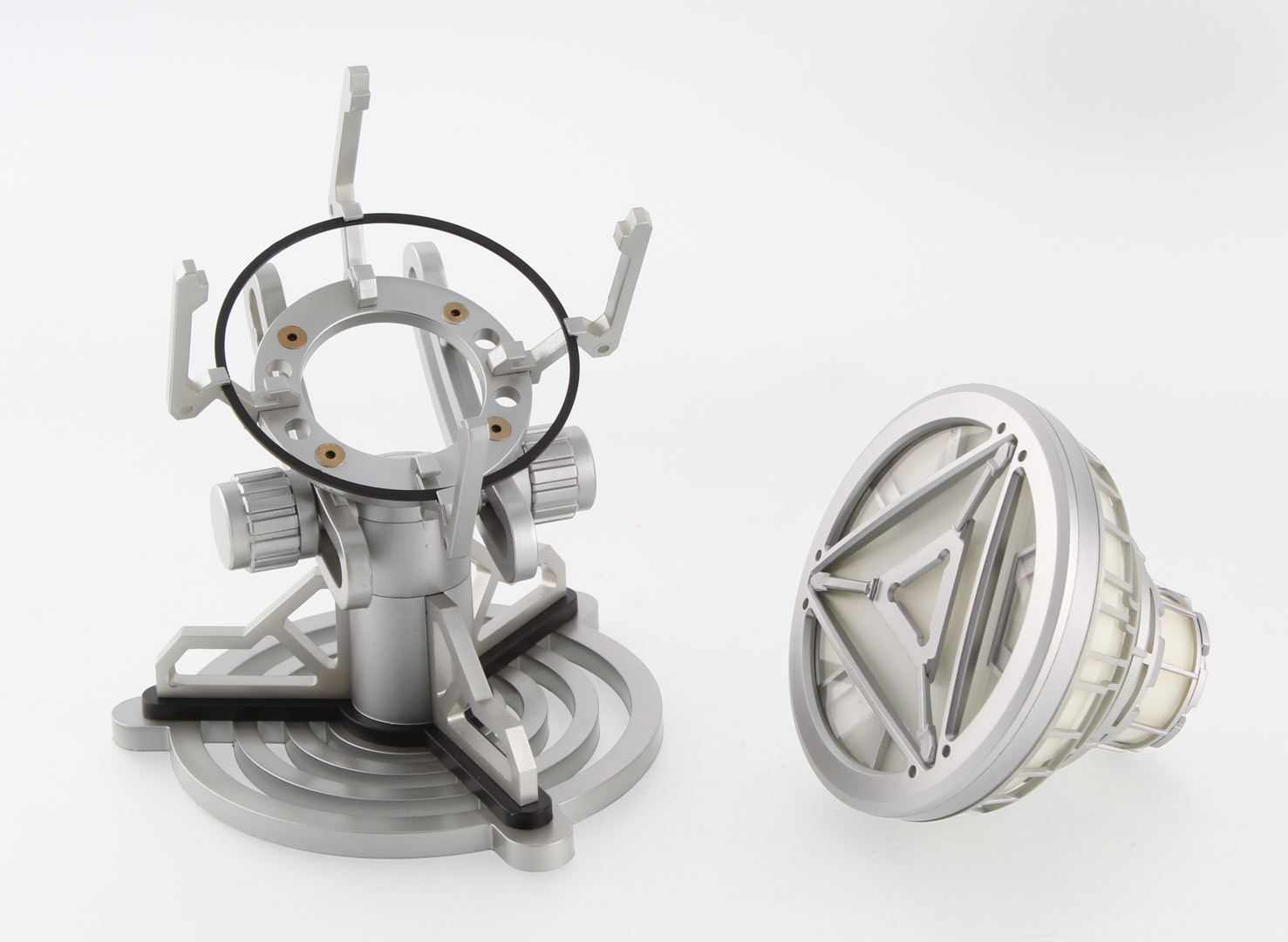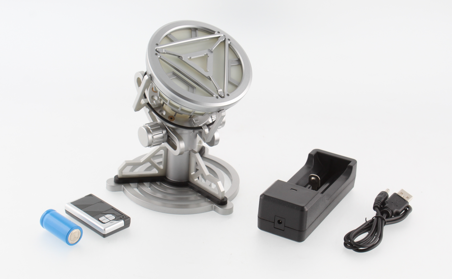 Light up movie replica arc reactor. Prop comes with remote control and stand.