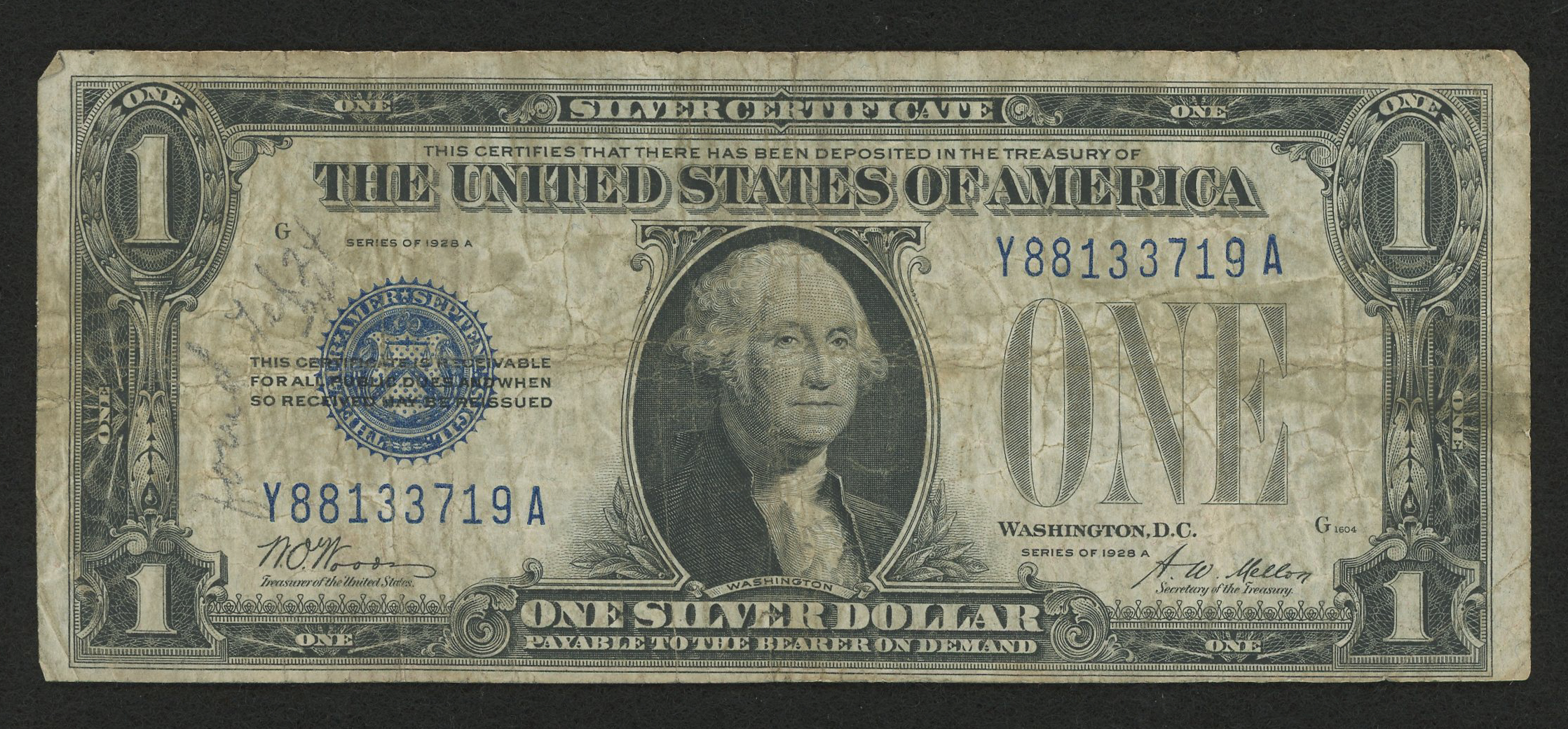 1928 $1 One Dollar "Funny Back" Silver Certificate Bank Note