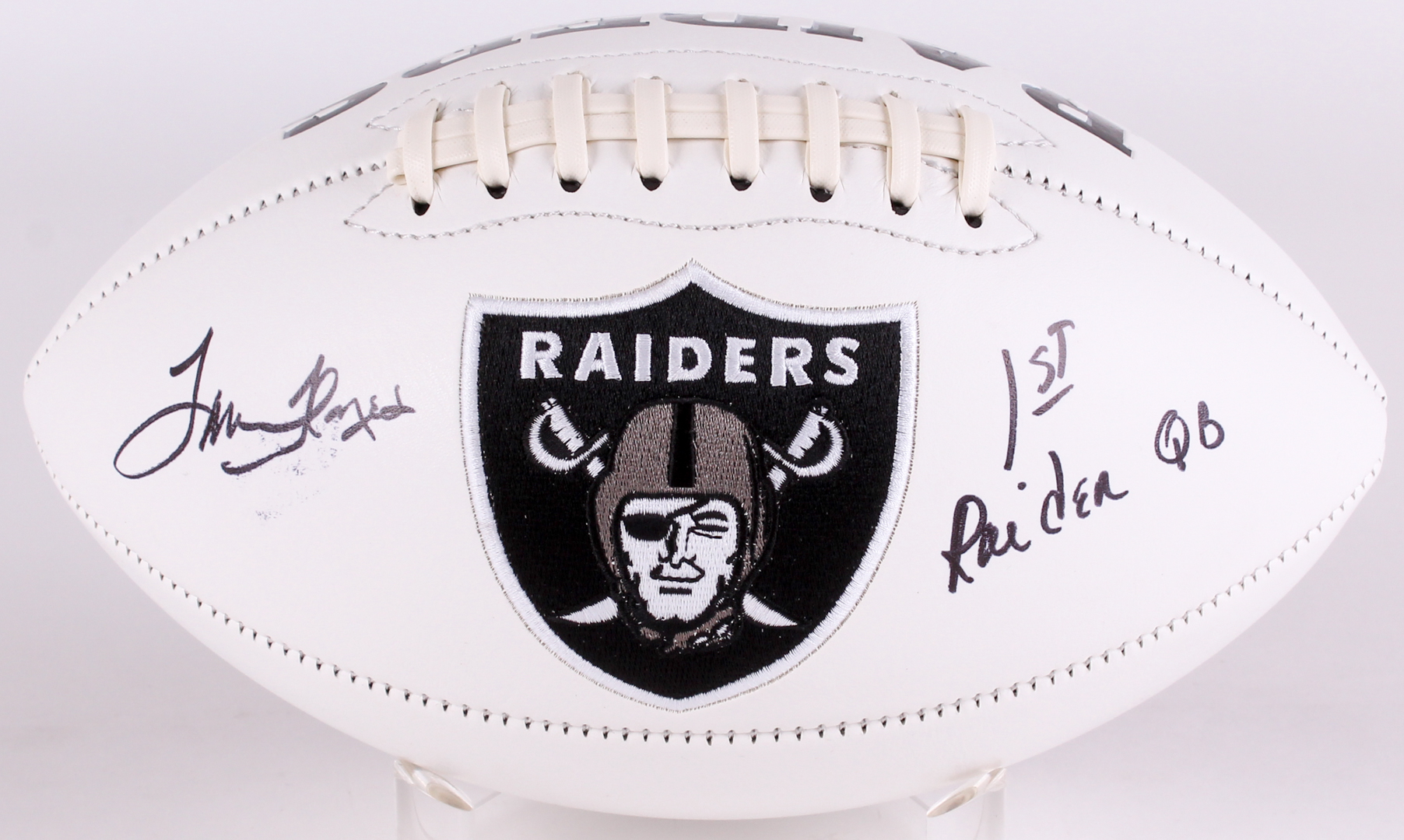 Tom Flores Signed Raiders Logo Football Inscribed "1st Raider QB" (JSA COA)