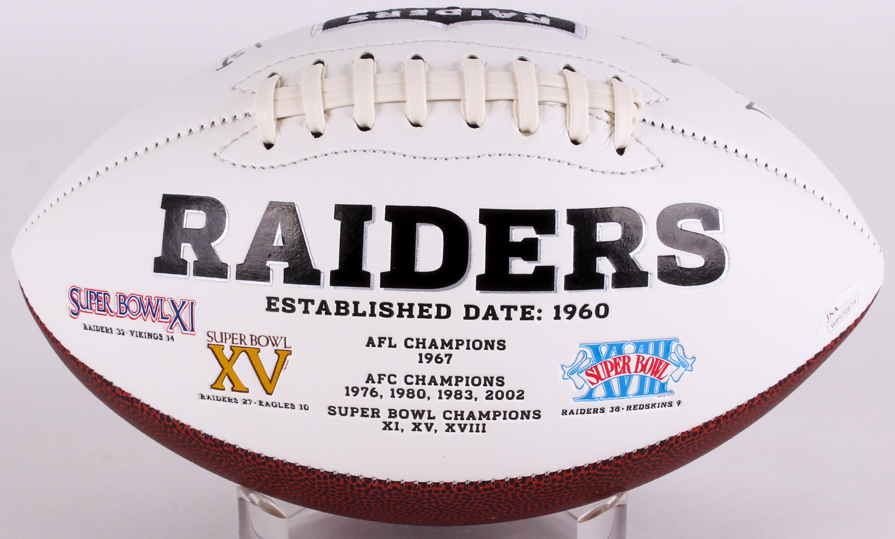 Raiders Logo Football. Hand-signed in black felt-tip pen by Tom Flores.