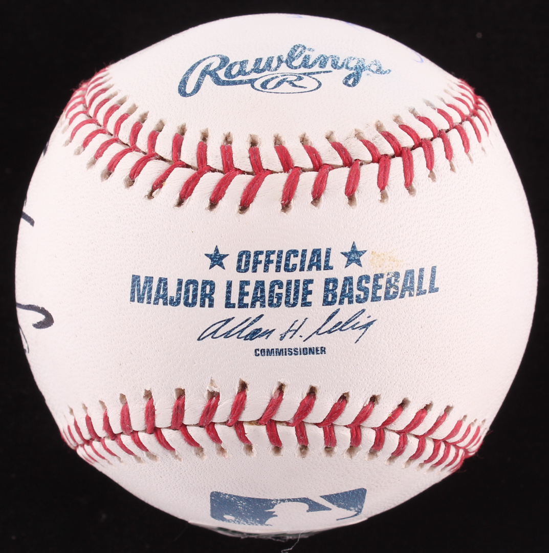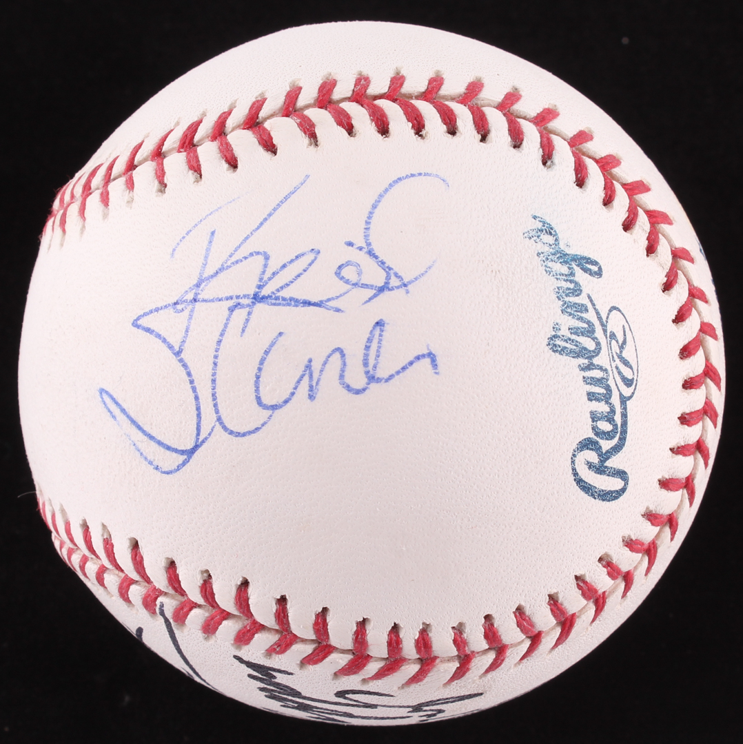 Rawlings Official Major League Baseball. Hand-signed in black felt tip pen by Scott Steiner and in blue ink pen by Rick Steiner.