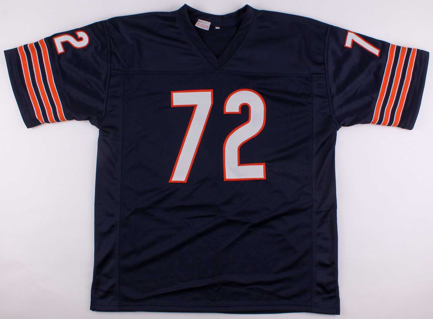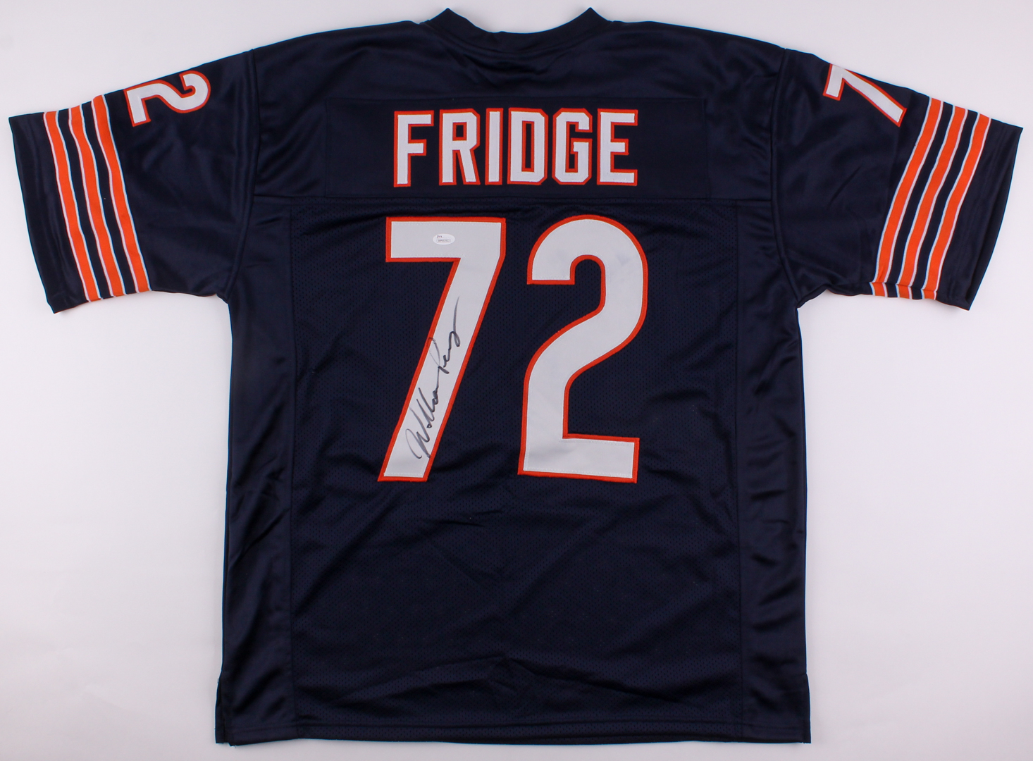 Custom on-field style jersey. Everything is sewn on, size XL. Hand-signed in black felt tip pen by William "The Fridge" Perry.