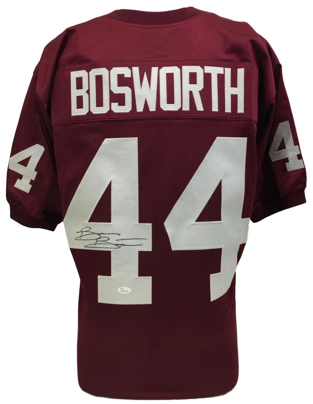 Custom on field style jersey with everything sewn on. Jersey has been hand-signed in black felt-tip pen by Brian Bosworth.