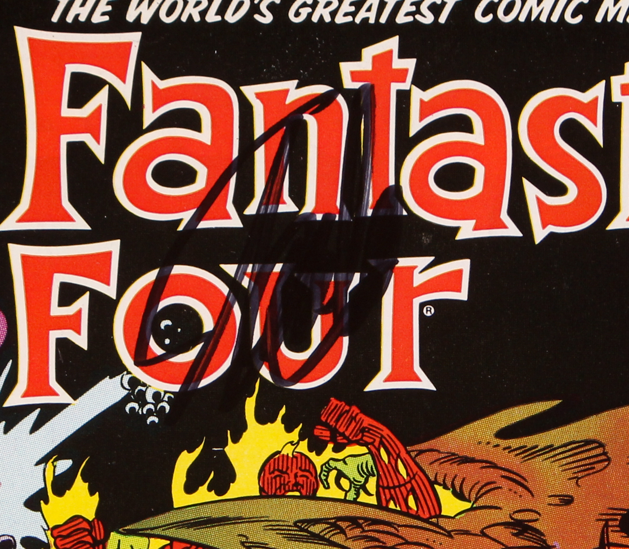 Custom frame measures approximately 14" x 18" in size. "Fantastic Four" Issue #315 has been hand-signed in black felt tip pen by Stan Lee.