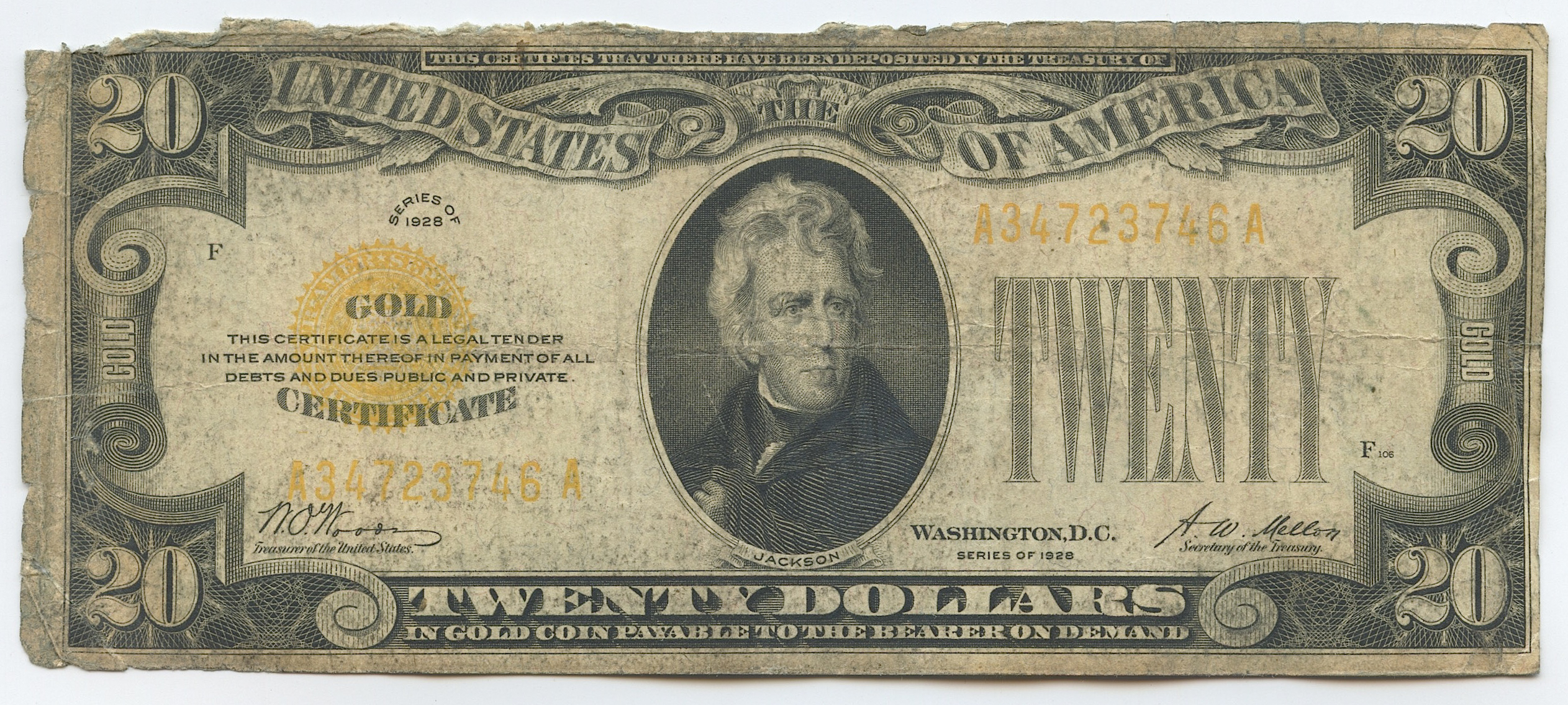 1928 $20 Twenty Dollars U.S. Gold Certificate Bank Note