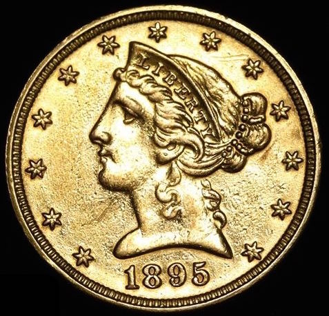 1895 $5 Five Dollars Liberty Head Half Eagle Gold Coin