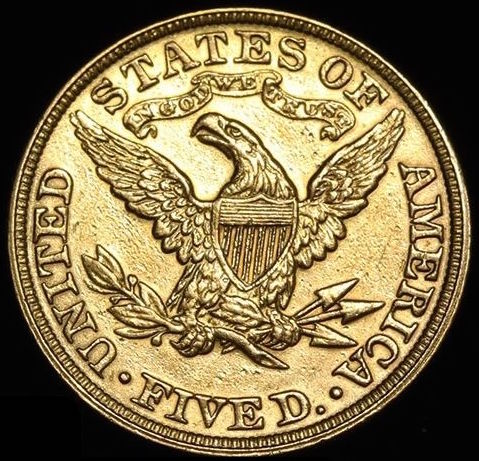 The Half Eagle is a United States coin that was produced for circulation from 1795 to 1929 and in commemorative and bullion coins since the 1980s. Composed almost entirely of gold, it has a face value of five dollars. Its production was authorized by The Act of April 2, 1792, and it was the first gold coin minted by the United States.
