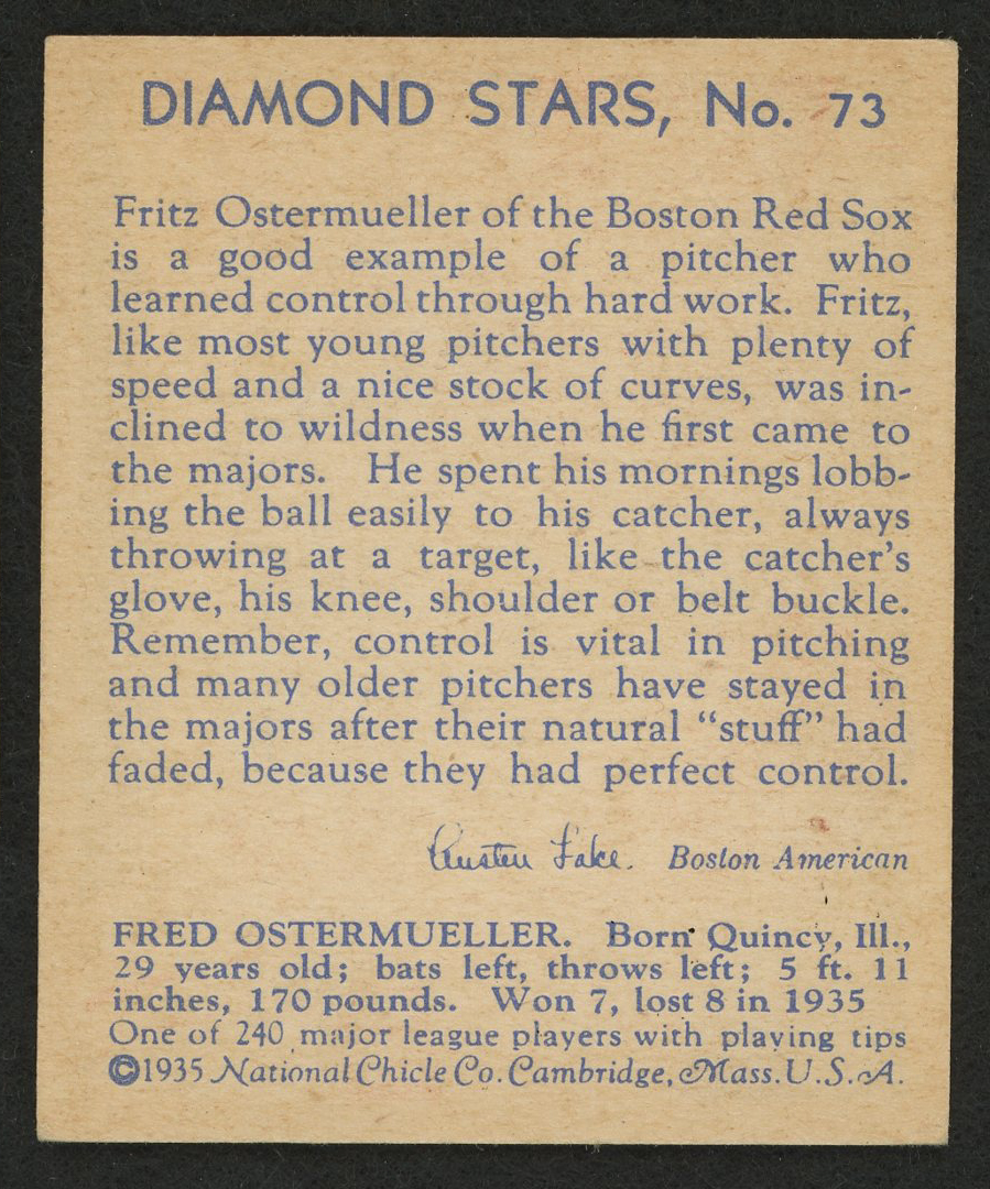 1934-36 Diamond Stars #73 Fritz Ostermueller / 35G, 35B, 36B