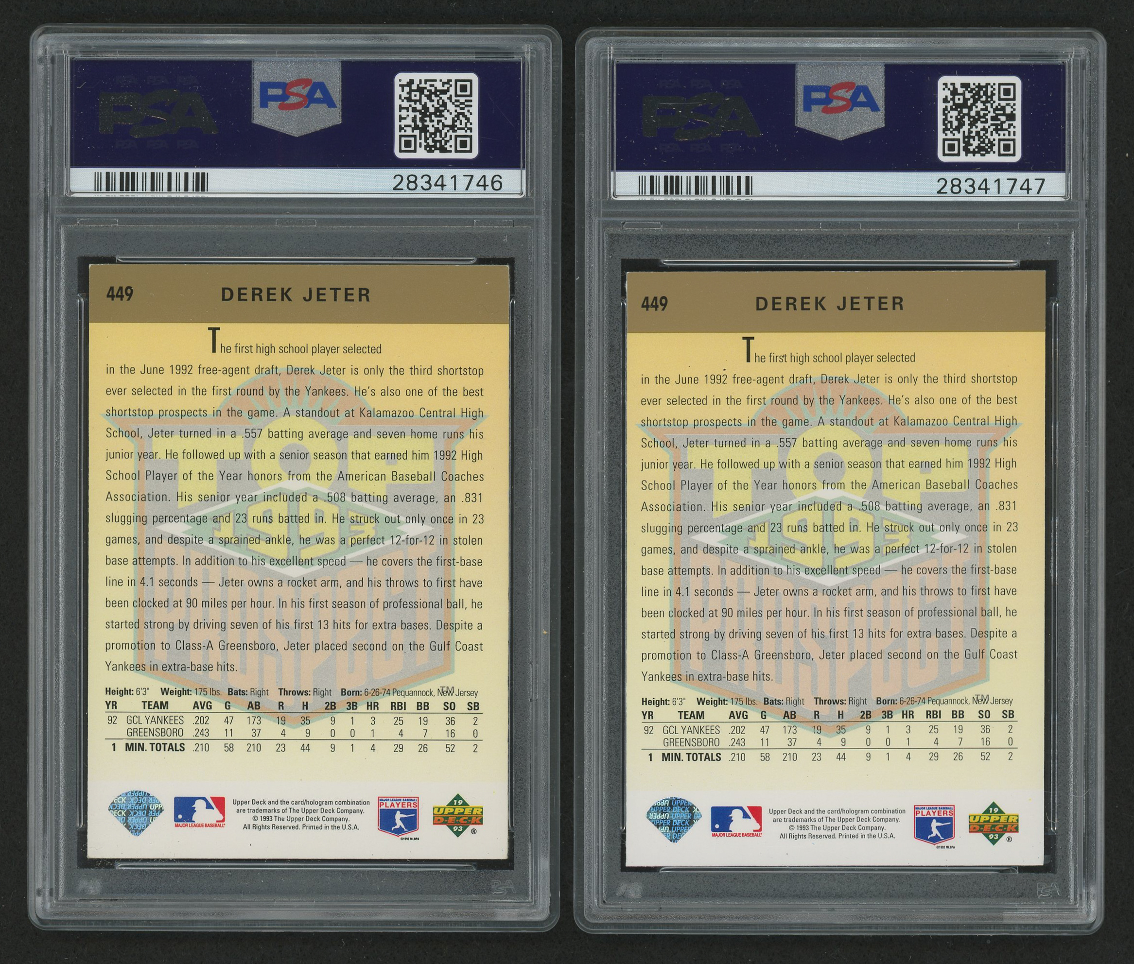 Lot of (2) 1993 Upper Deck #449 Derek Jeter (PSA Authentic)