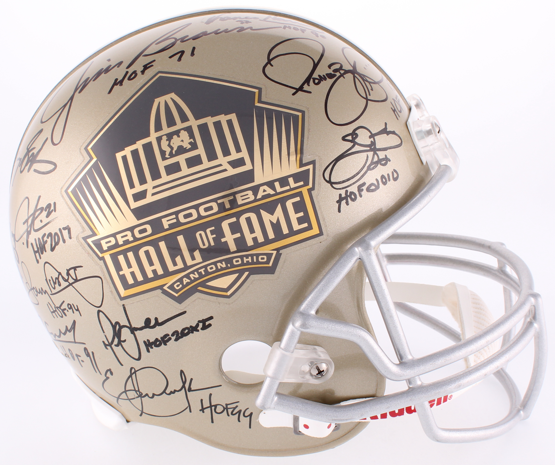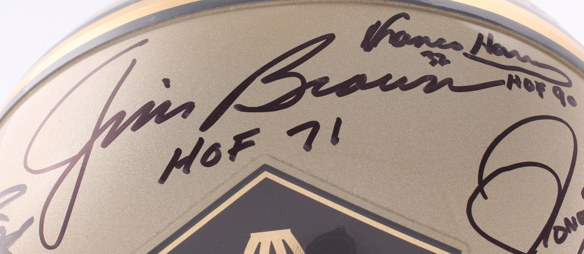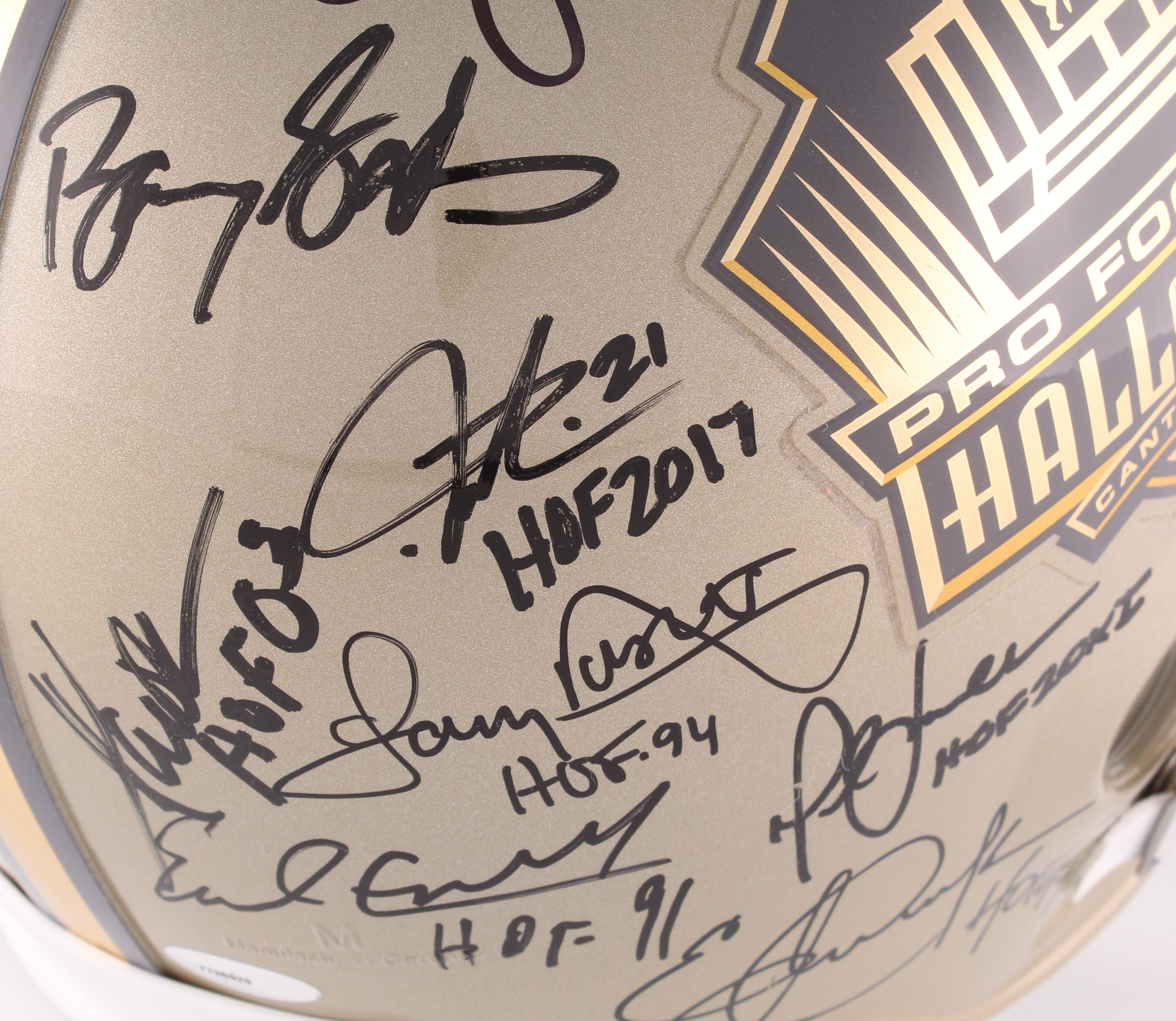 NFL HOF Full-Size Helmet Signed by (15) with Jim Brown, Jerome Bettis, Barry Sanders, Emmitt Smith, John Riggins, LaDainian Tomlinson, Jim Taylor (Beckett COA & TriStar Hologram)