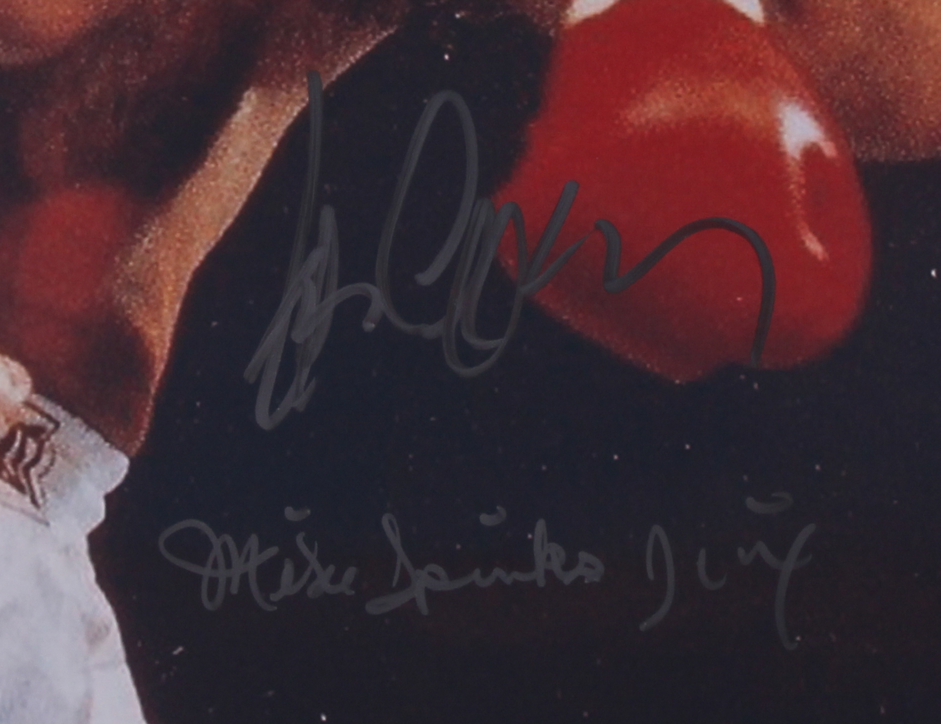Photo measure 16" x 20" in size and has been hand-signed in silver paint pen by Michael Spinks and Gerry Cooney.