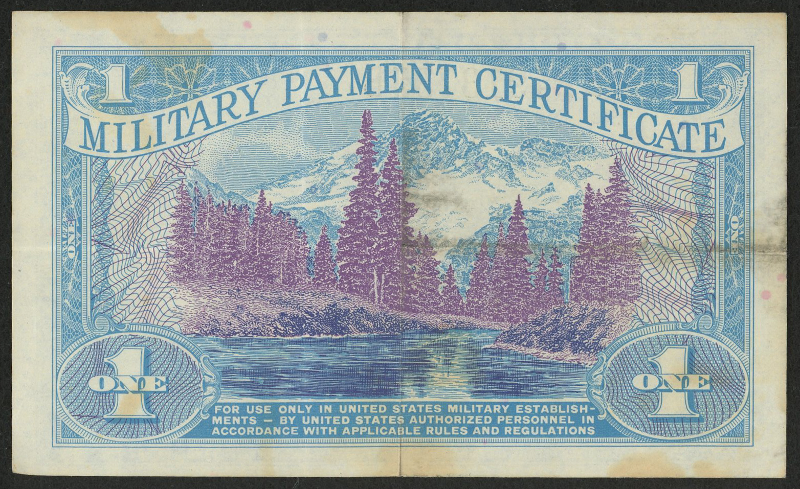 Military payment certificates, or MPC, was a form of currency used to pay U.S. military personnel in certain foreign countries. It was used in one area or another from a few months after the end of World War II until a few months after the end of U.S. participation in the Vietnam War – from 1946 until 1973. MPC utilized layers of line lithography to create colorful banknotes that could be produced cheaply. Fifteen series of MPCs were created. However, only 13 series were issued. The remaining two were largely destroyed, although some examples remain. Among the 13 released series a total of 94 notes are recognized.