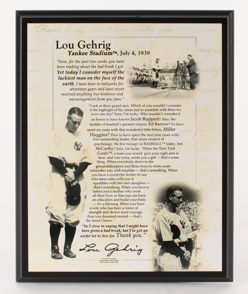 Lou Gehrig "Yankee Stadium Farewell Speech" 8x10 Commemorative Photo Plaque