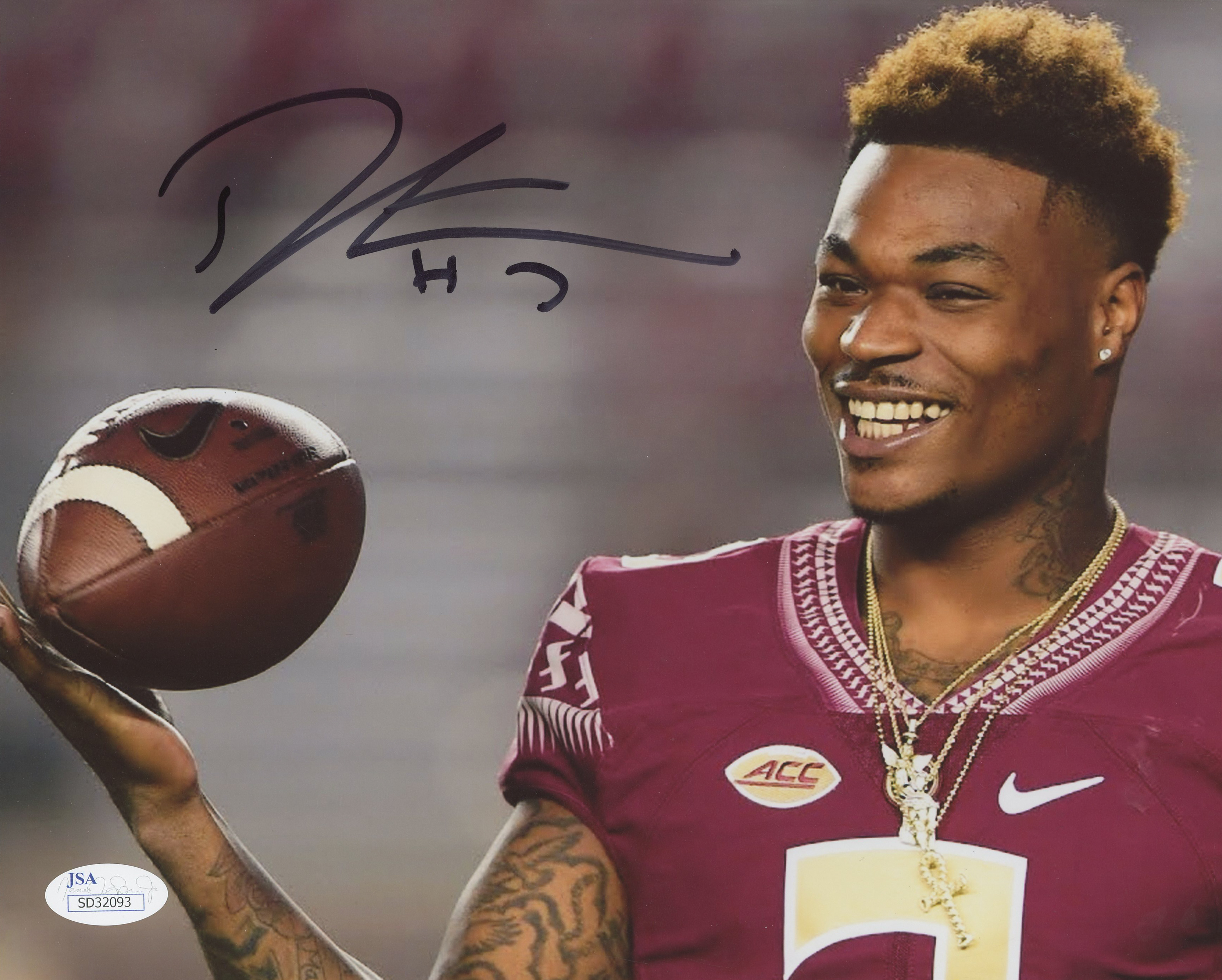 Photo measures 8" x 10" in size. Hand-signed in black felt tip pen by Derwin James.
