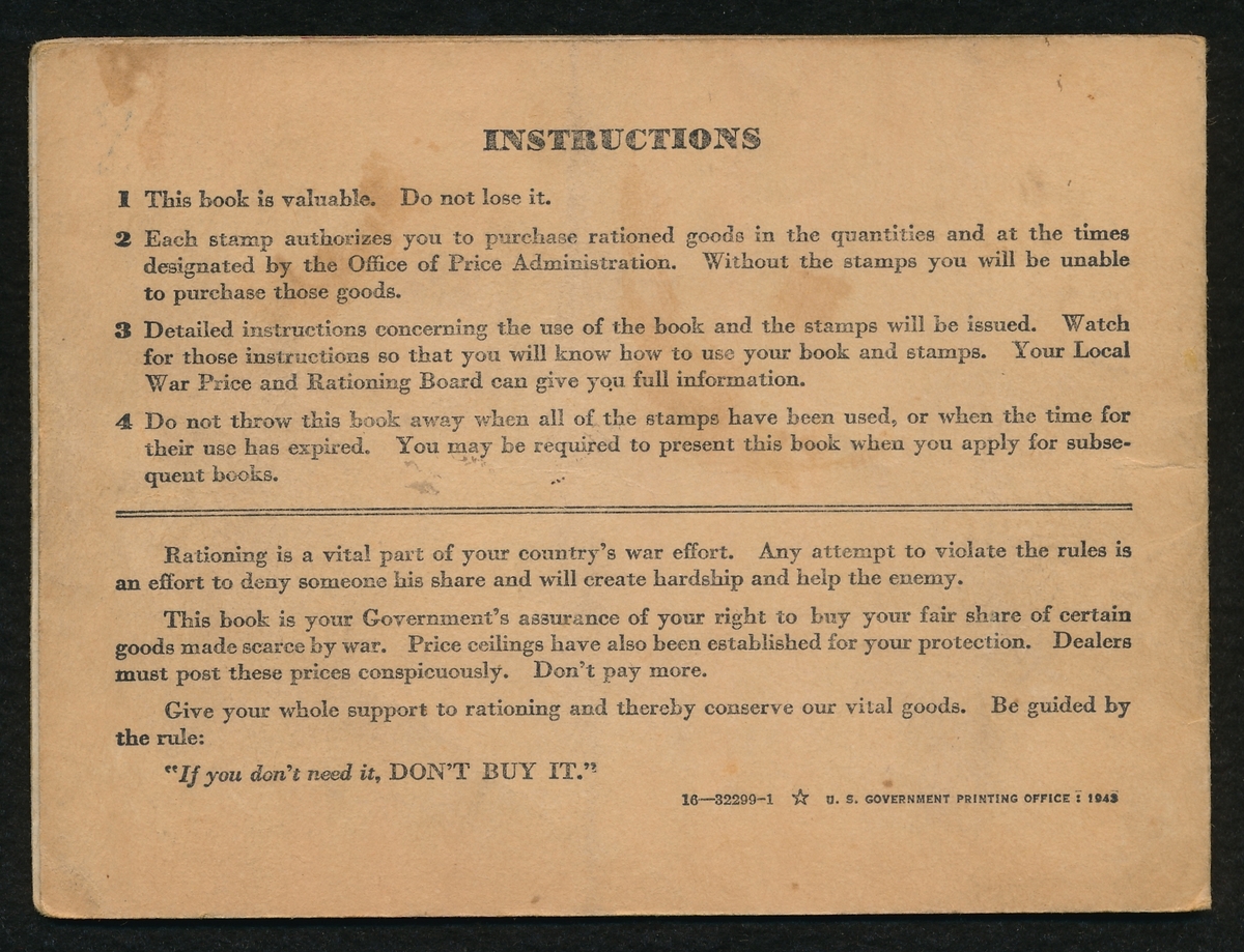 Vintage World War II War Ration Book No. 3 from 1943