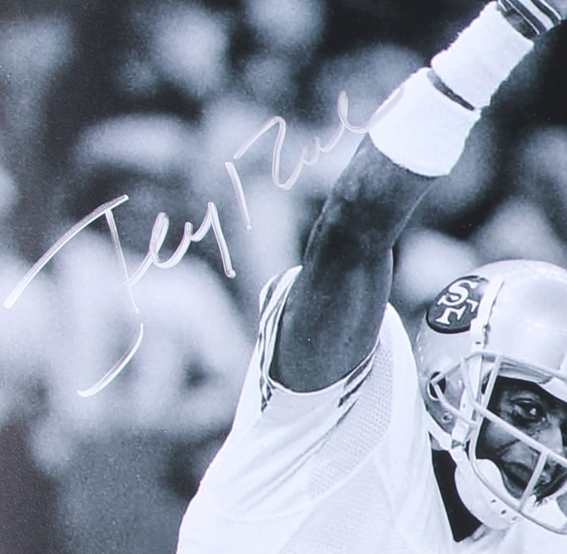 Custom matted photo display measures 18" x 30" in size and features (3) 8" x 10" photos that have been individually hand-signed and inscribed by Jerry Rice (HOF), Joe Montana (HOF) and Dwight Clark.