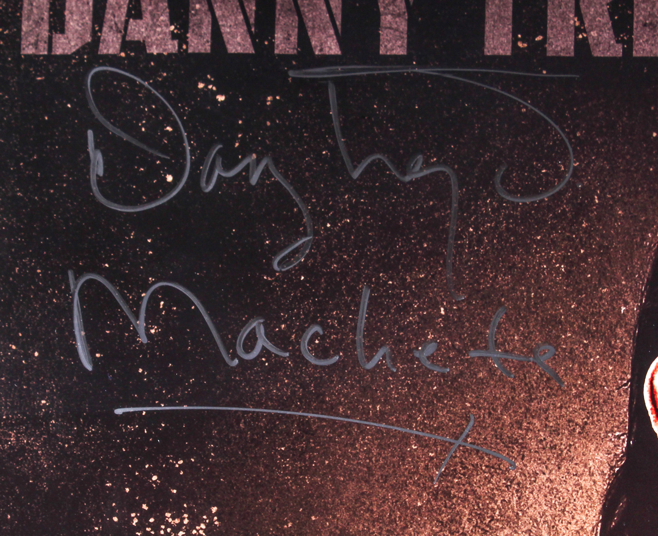 Custom framed poster display measures 30" x 43" in size and has been hand-signed in silver paint pen by Danny Trejo (Machete Cortez) and Michelle Rodriguez (Luz / She).