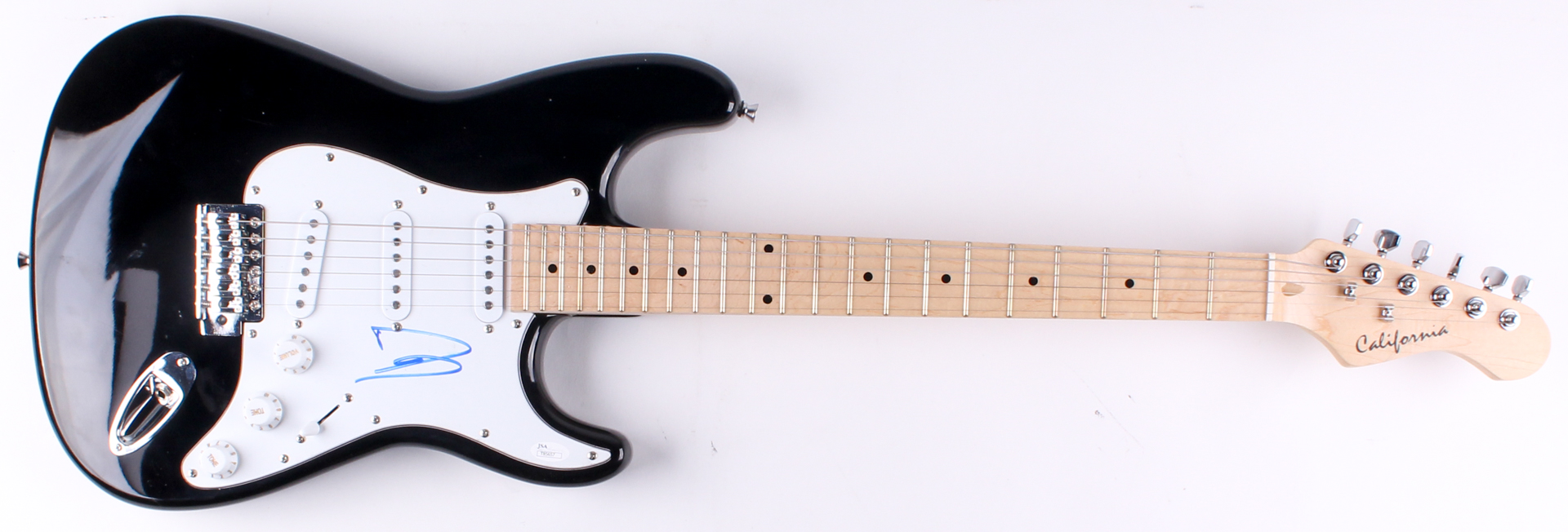California full-size electric guitar has been hand-signed in blue felt-tip pen by Dave Grohl (Nirvana, Foo Fighters).