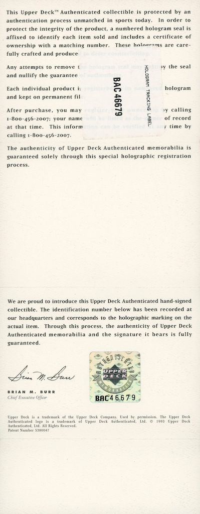 The lot / autograph(s) includes an official Upper Deck Authenticated (UDA) hologram and matching COA for authenticity purposes.