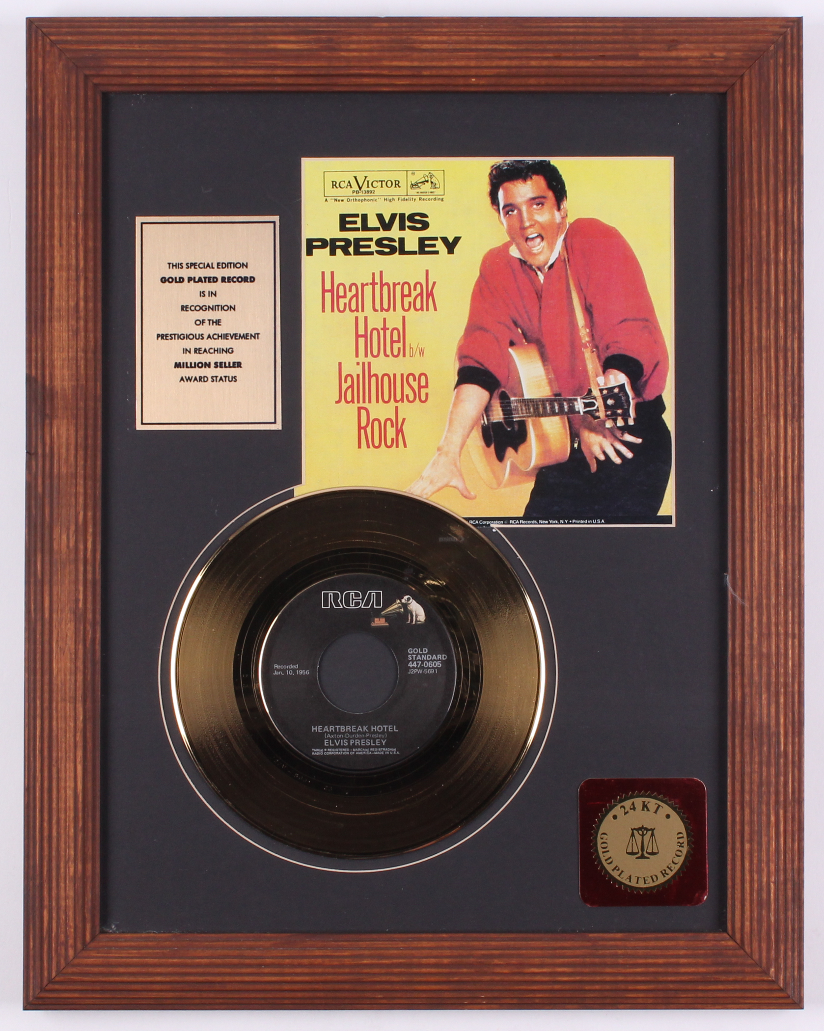 Elvis Presley "Heartbreak Hotel" 14x18 Custom Framed 24K Gold Plated Record Album