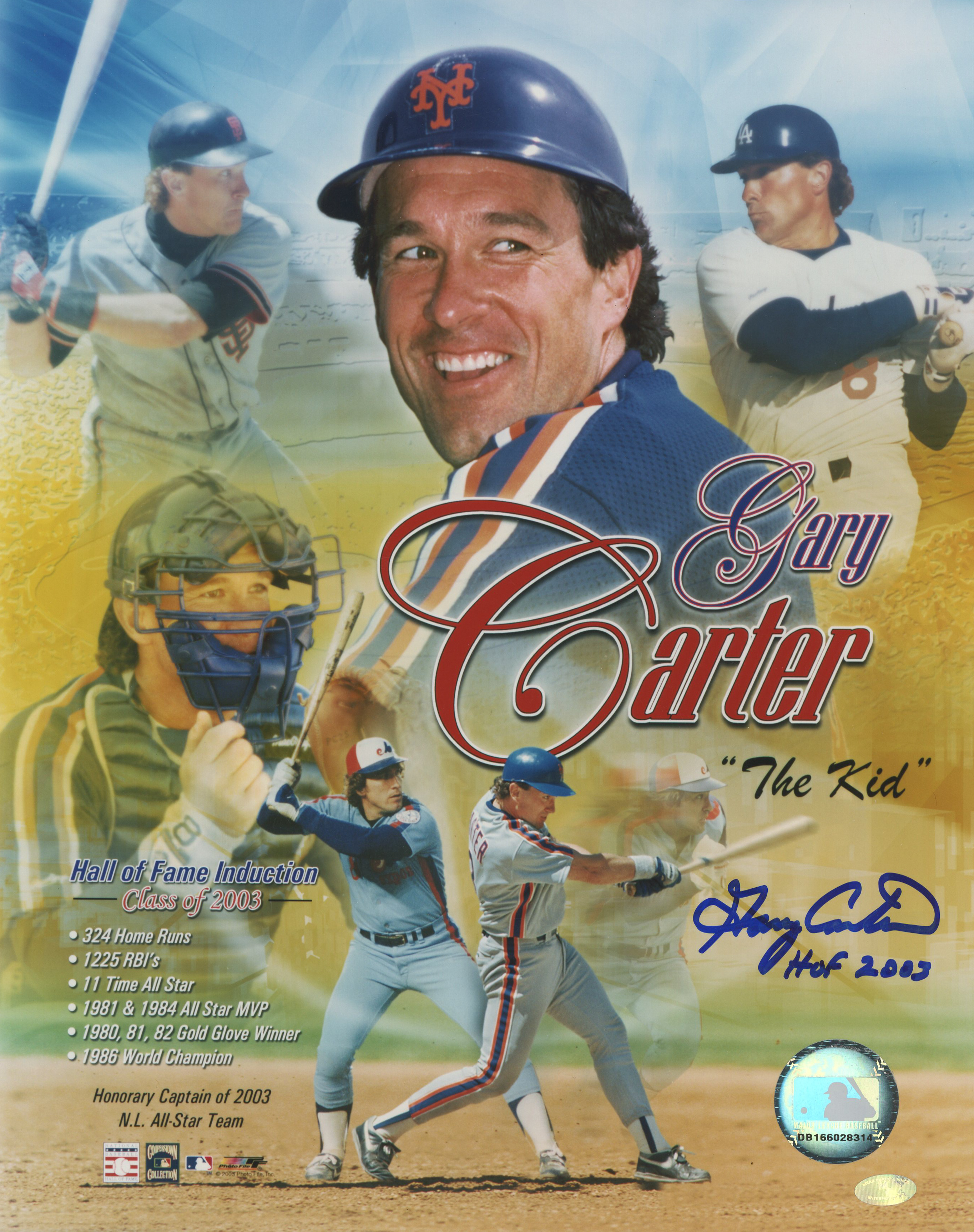 Photo measures 8" x 10" in size and has been hand signed in blue felt-tip pen by Gary Carter (D.2012, HOF).