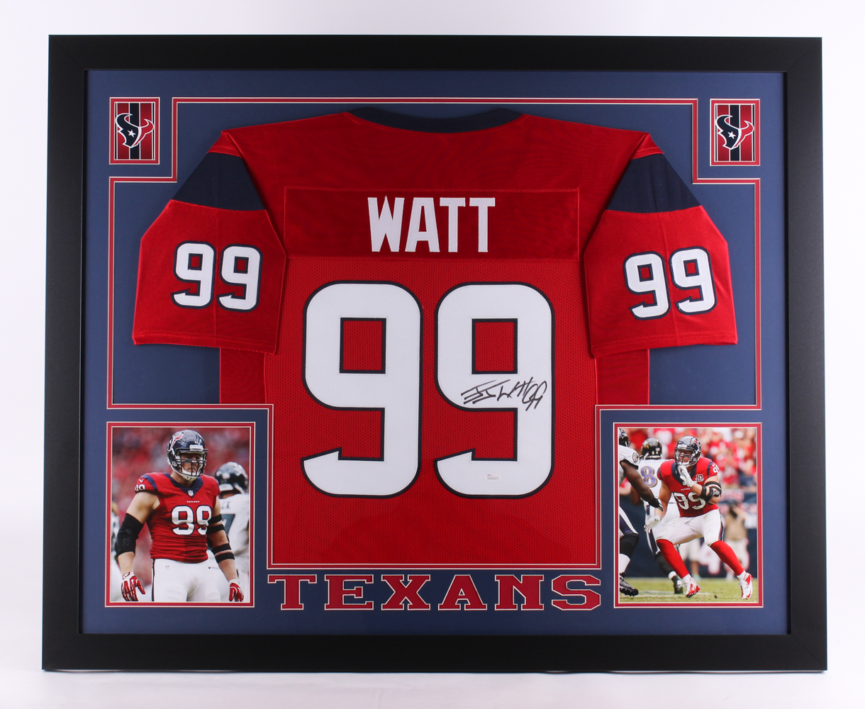 J.J. Watt Signed Texans 35" x 43" Custom Framed Jersey (JSA COA)