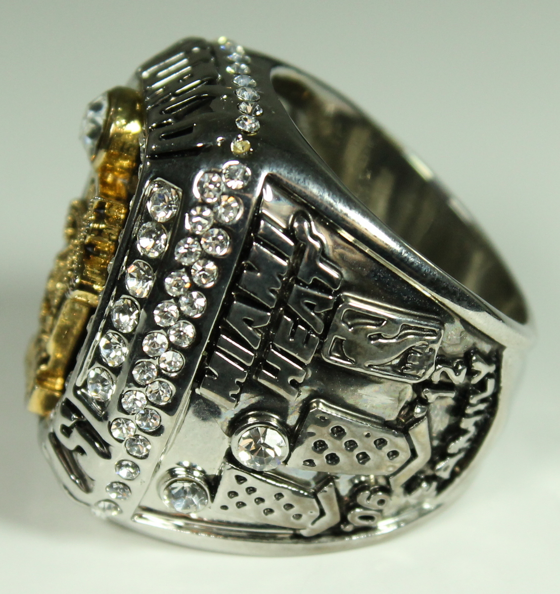 LeBron James Heat High Quality Replica 2012 NBA Championship Ring. The ring has been hand crafted by professional jewelers. Made of metal alloy and clad with Silver. Size 10.