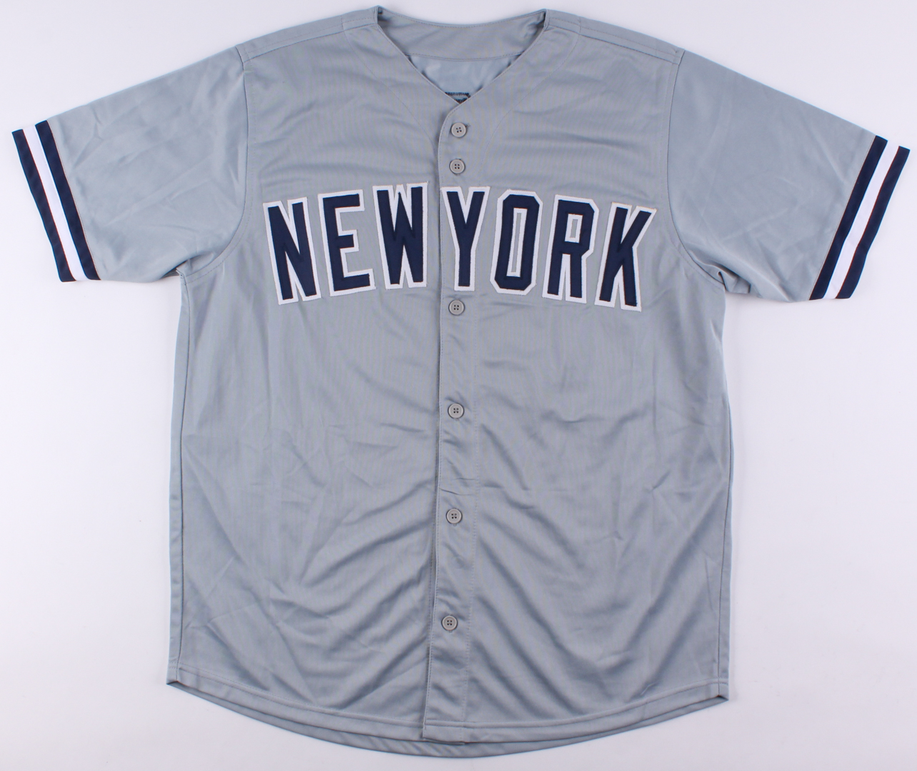 Custom on-field style jersey. Everything sewn on, size XL. Hand-signed in silver paint pen by Aaron Boone.