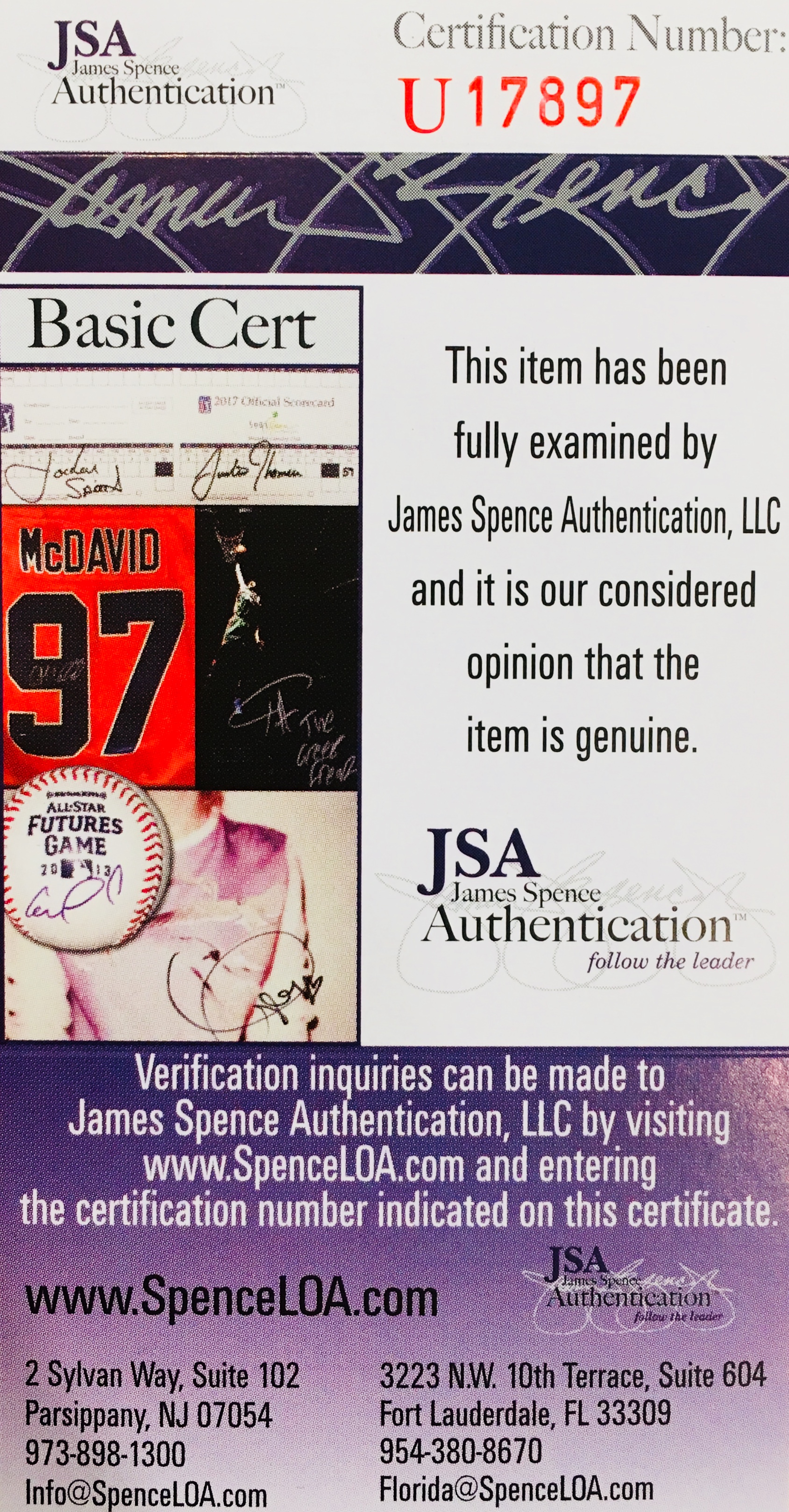 The lot / autograph(s) includes an official James Spence Authentication (JSA) hologram and matching COA for authenticity purposes.