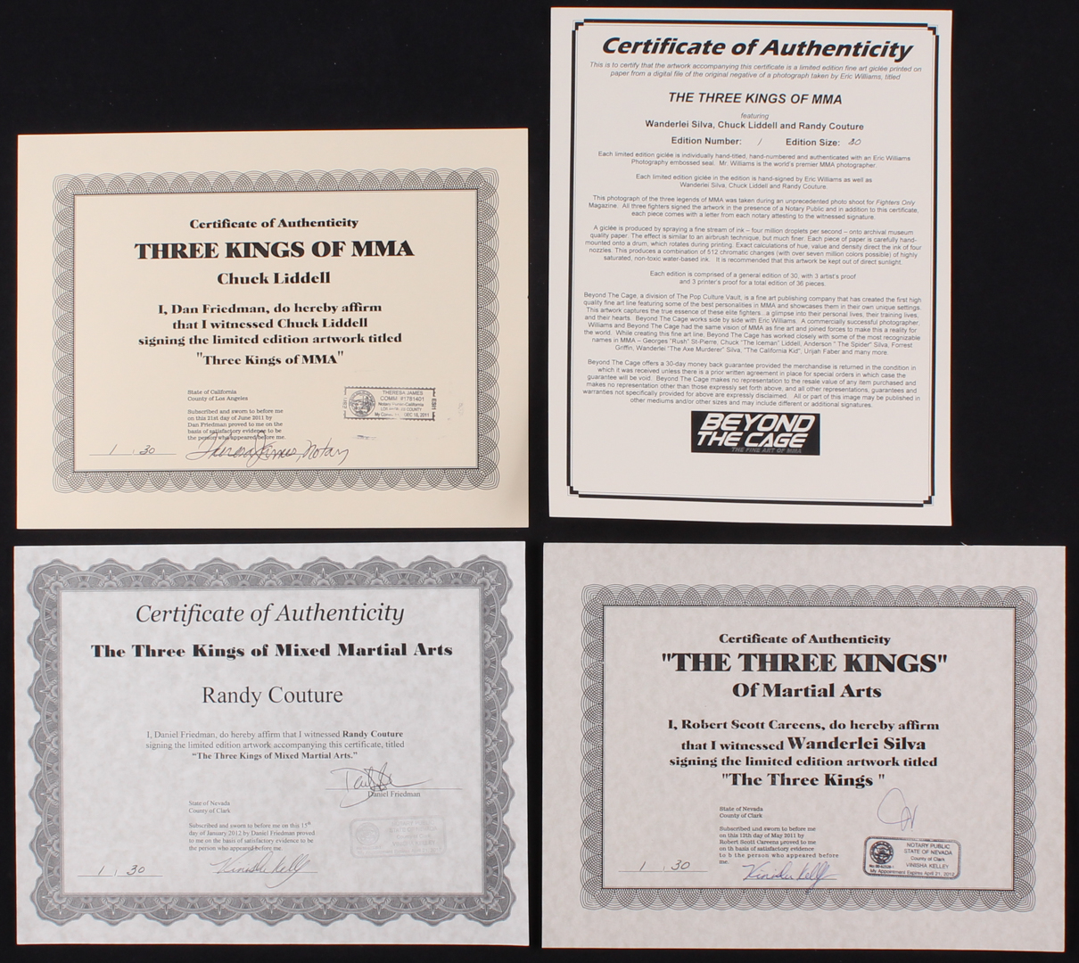 Randy Couture, Chuck Liddell & Wanderlei Silva "The Three Kings of MMA" Signed 23x30.5 UFC Fine Art Giclee by Iconic Sports Photographer Eric Williams #1/30 (Beyond the Cage COA & PA LOA)
