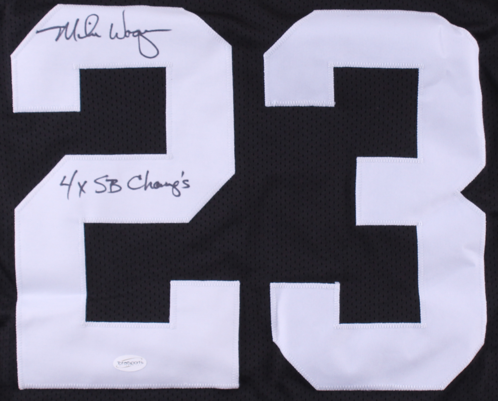 Custom on-field style jersey. Everything is sewn on, size XL. Hand-signed in black felt-tip pen by Mike Wagner. Please note, there is minor staining.