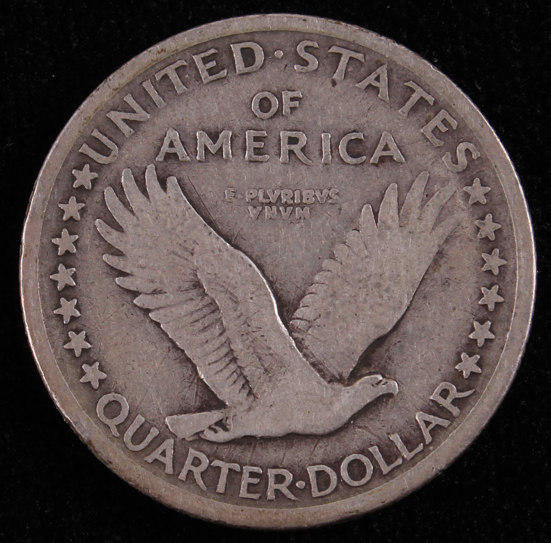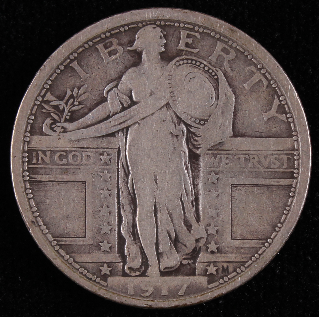 The Standing Liberty quarter was a 25-cent coin struck by the United States Mint from 1916 to 1930. It succeeded the Barber quarter, which had been minted since 1892. Featuring the goddess of Liberty on one side and an eagle in flight on the other, the coin was designed by sculptor Hermon Atkins MacNeil.