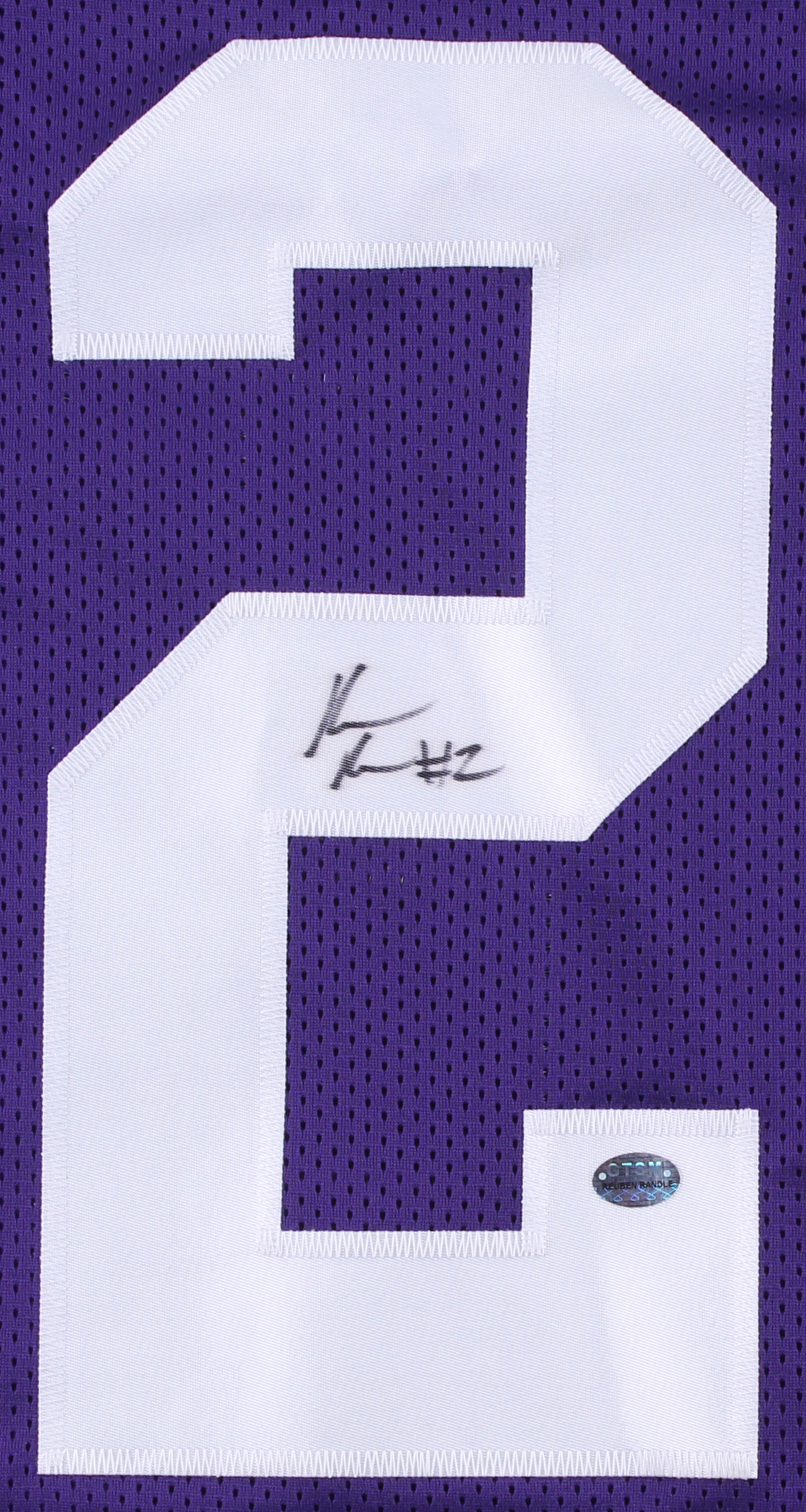 Custom on-field style jersey. Everything is sewn on, size XL. Hand-signed in black felt-tip pen by Rueben Randle.