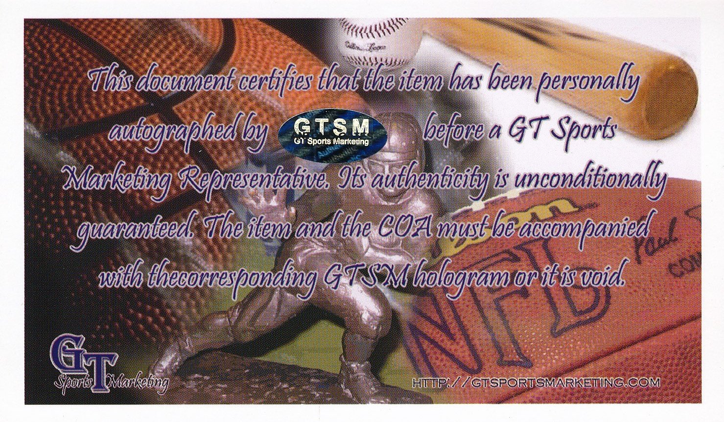 The autograph includes an official GTSM COA, as well as an official Rueben Randle player hologram from GT Sports Marketing for authenticity purposes.