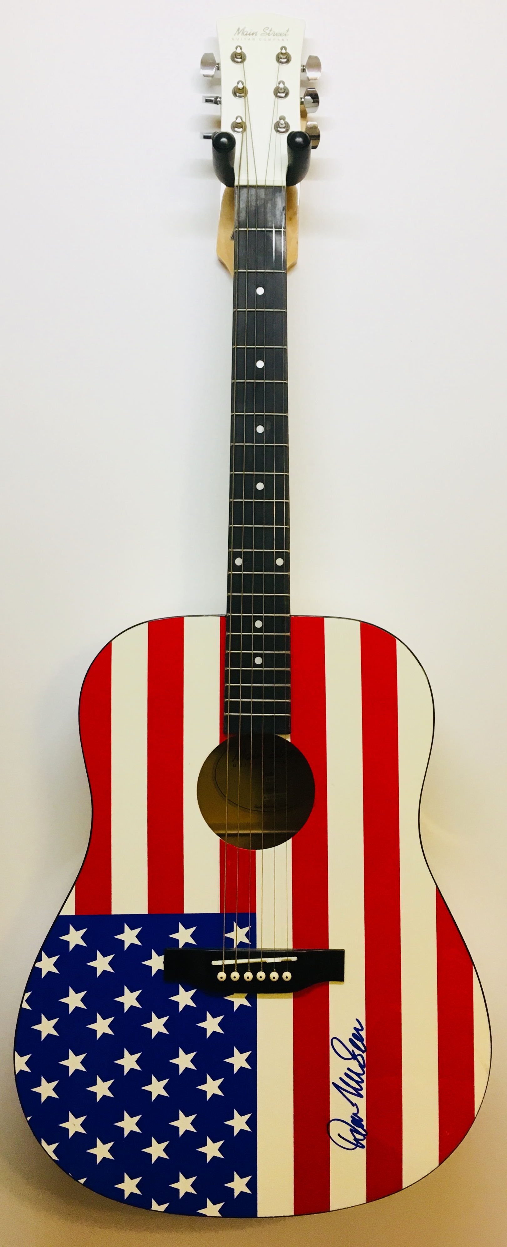 Full-size Main Street acoustic guitar, hand-signed on the body by Don McLean, in blue fiber-tip marker.