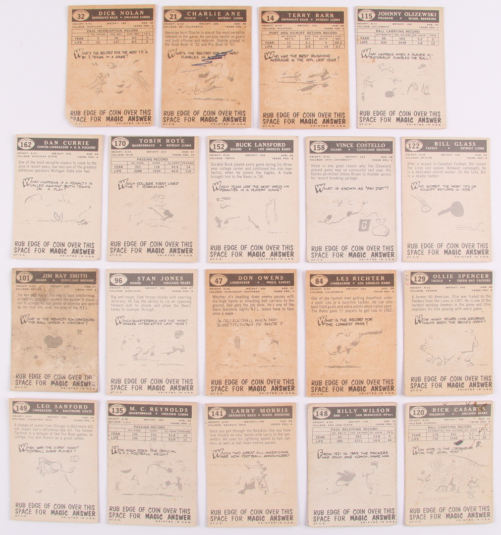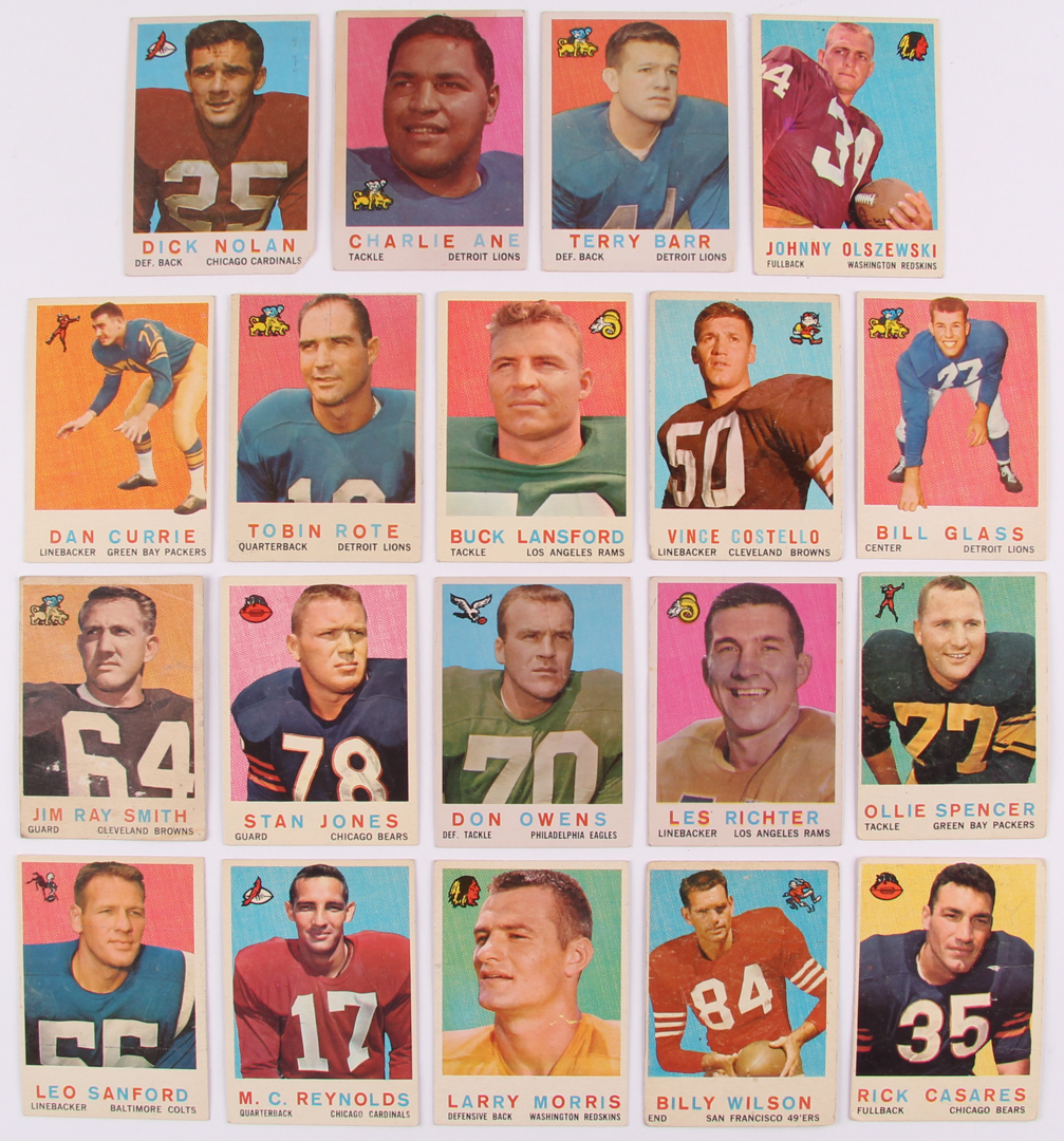 Lot Of (19) 1959 Topps Football Cards With #32 Dick Nolan, #21 Charlie Ane, #14 Terry Barr, #115 Johnny Olszewski
