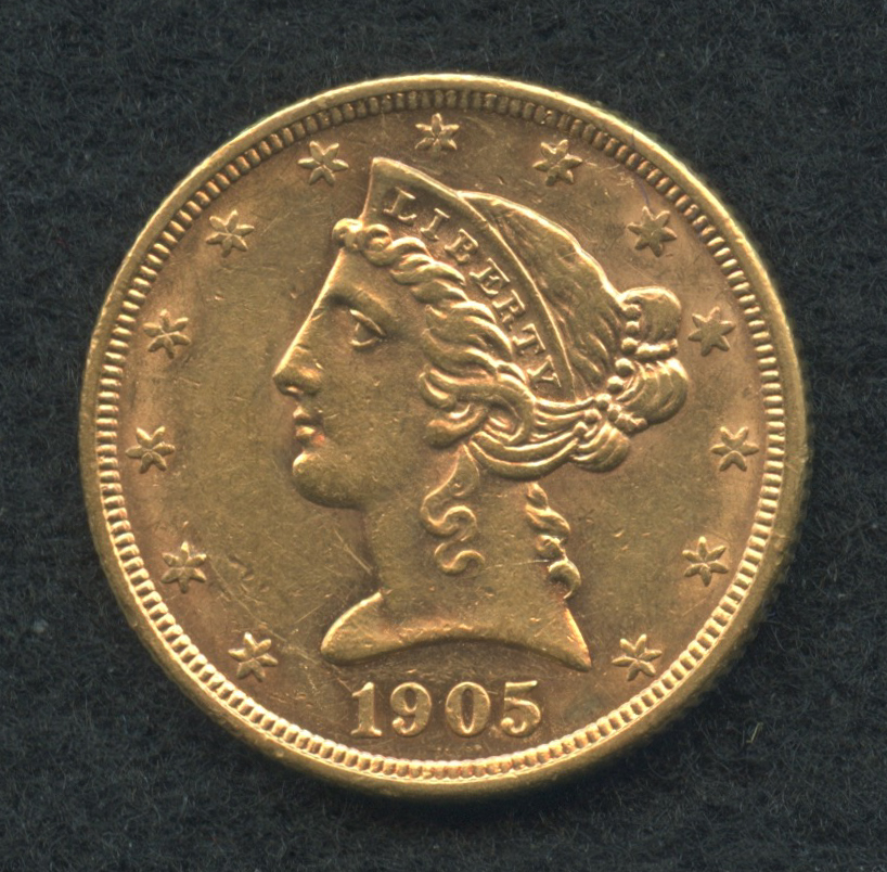 1905-S $5 Five Dollars Liberty Head Half Eagle Gold Coin