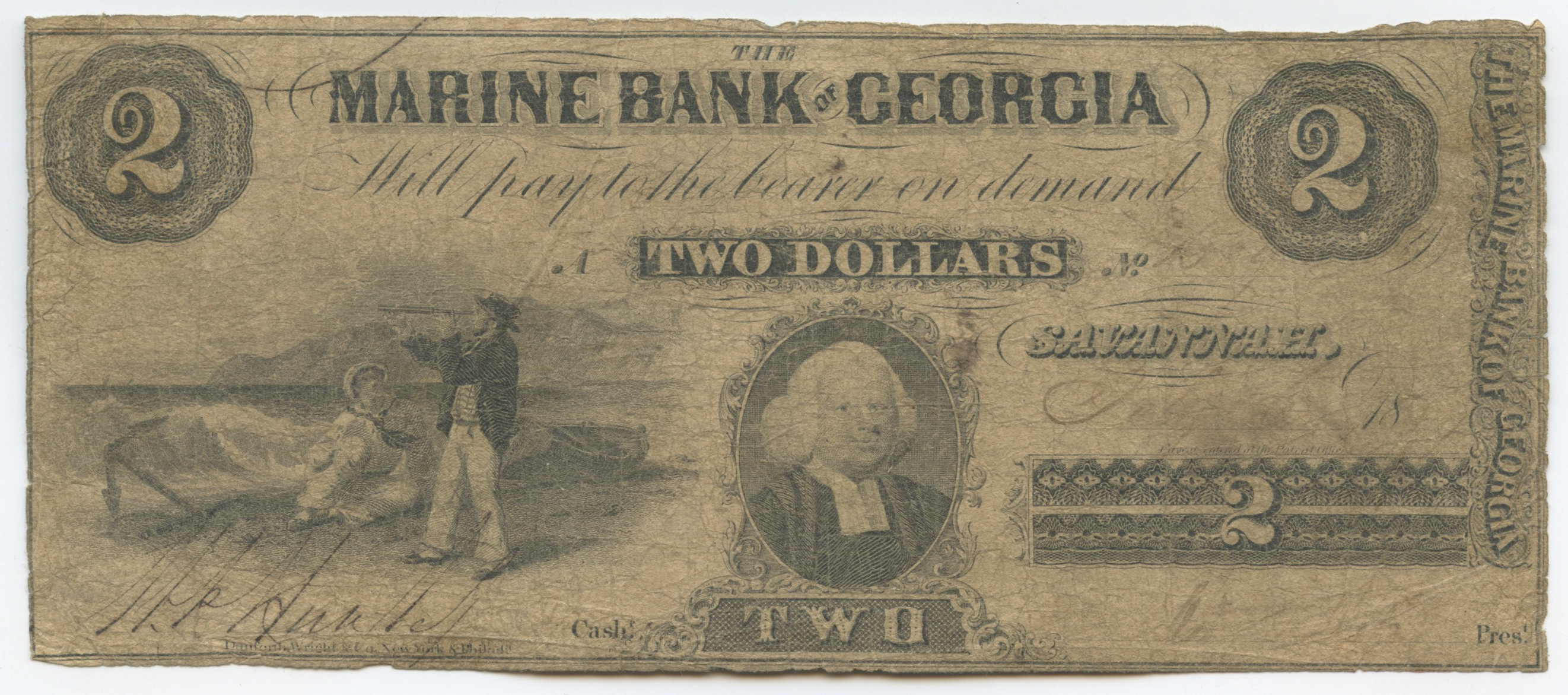 1800s $2 Two Dollars - The Marine Bank of Georgia - Savannah, Georgia Bank Note