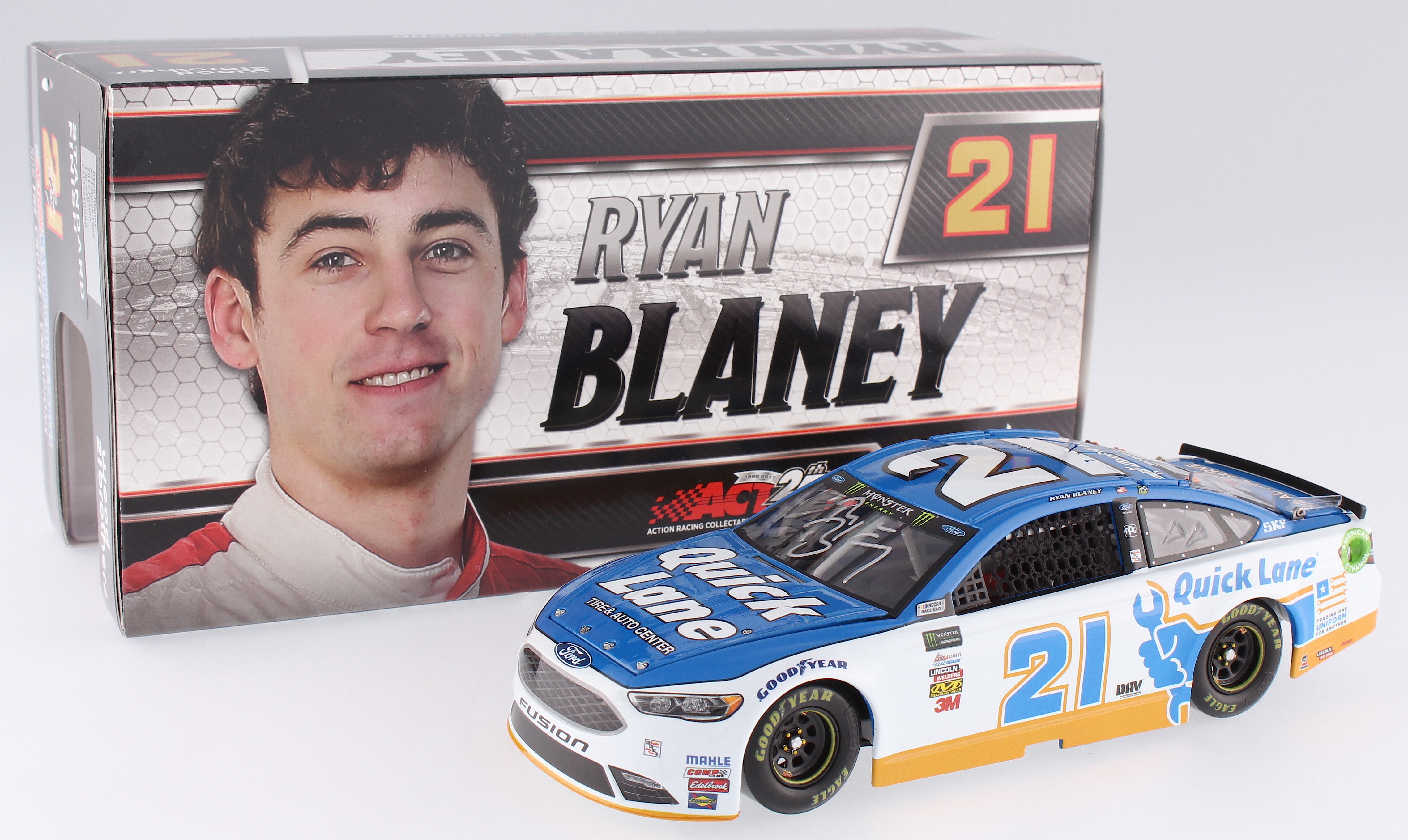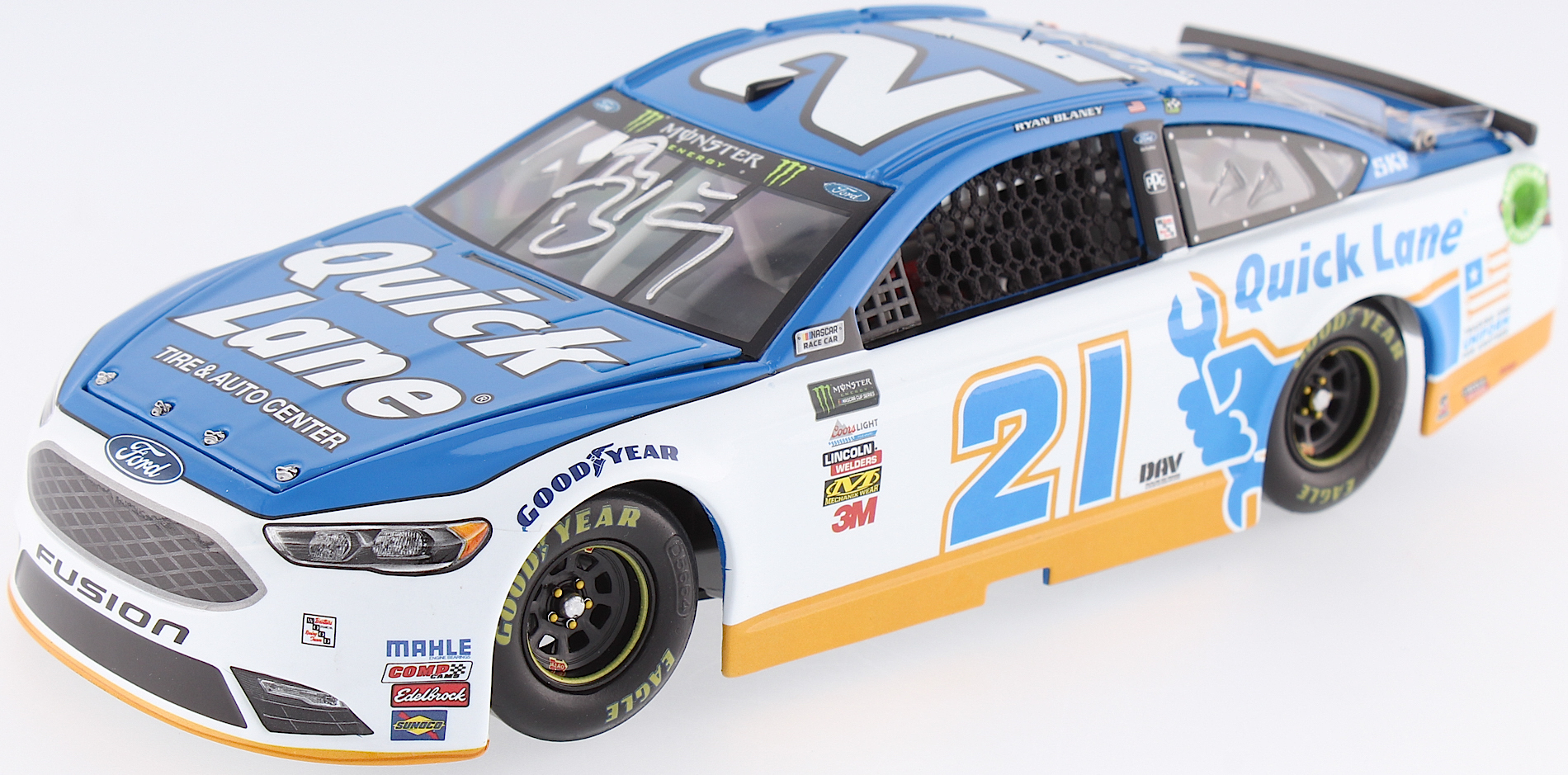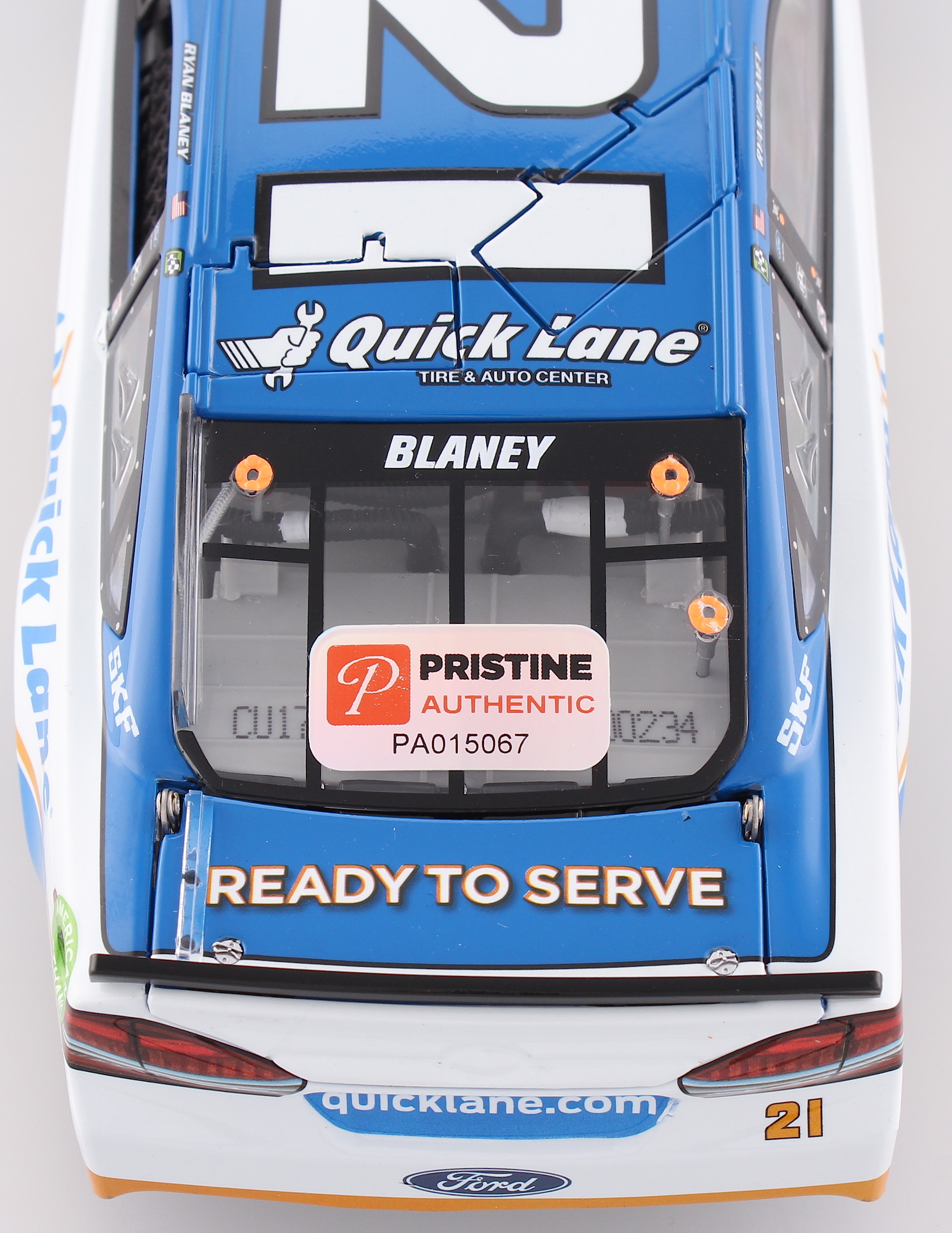 Ryan Blaney Signed 2017 NASCAR #21 Quick Lane 1:24 Premium Action Diecast Car (PA COA)