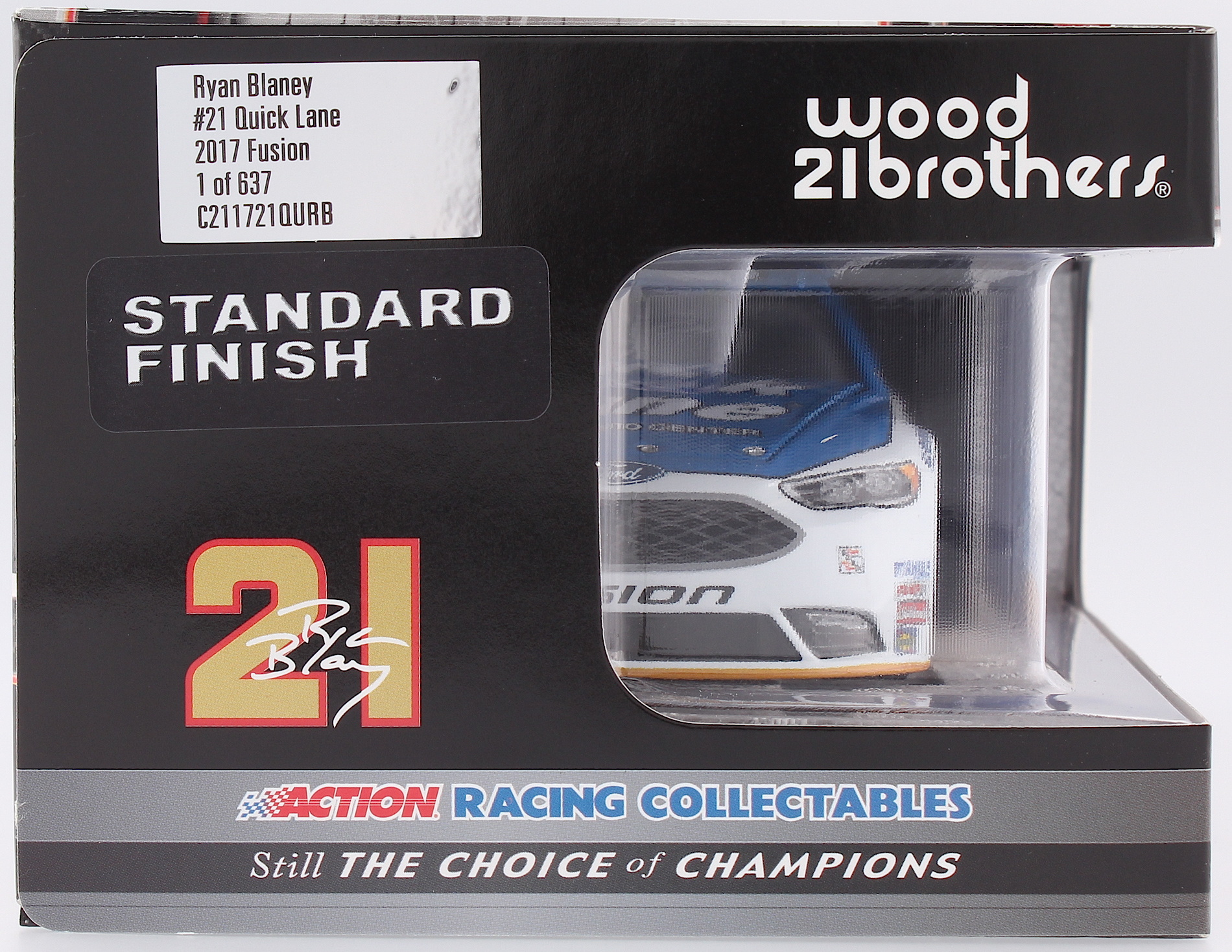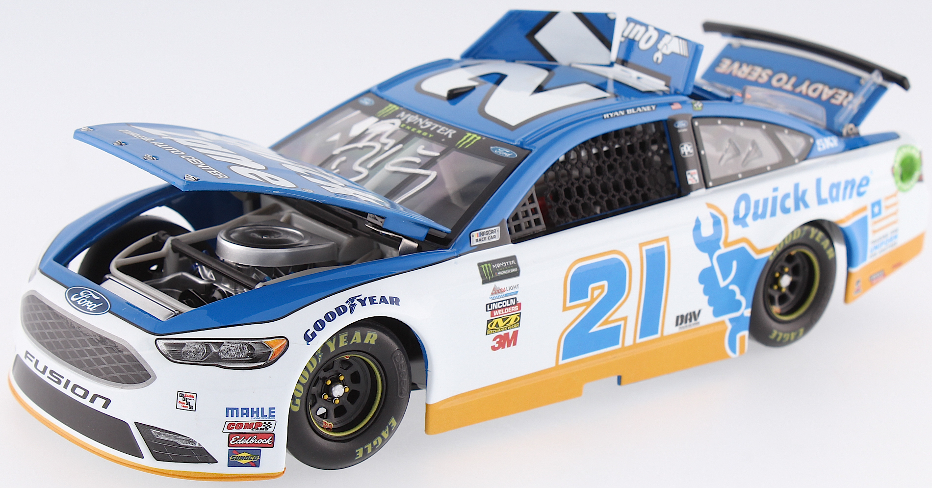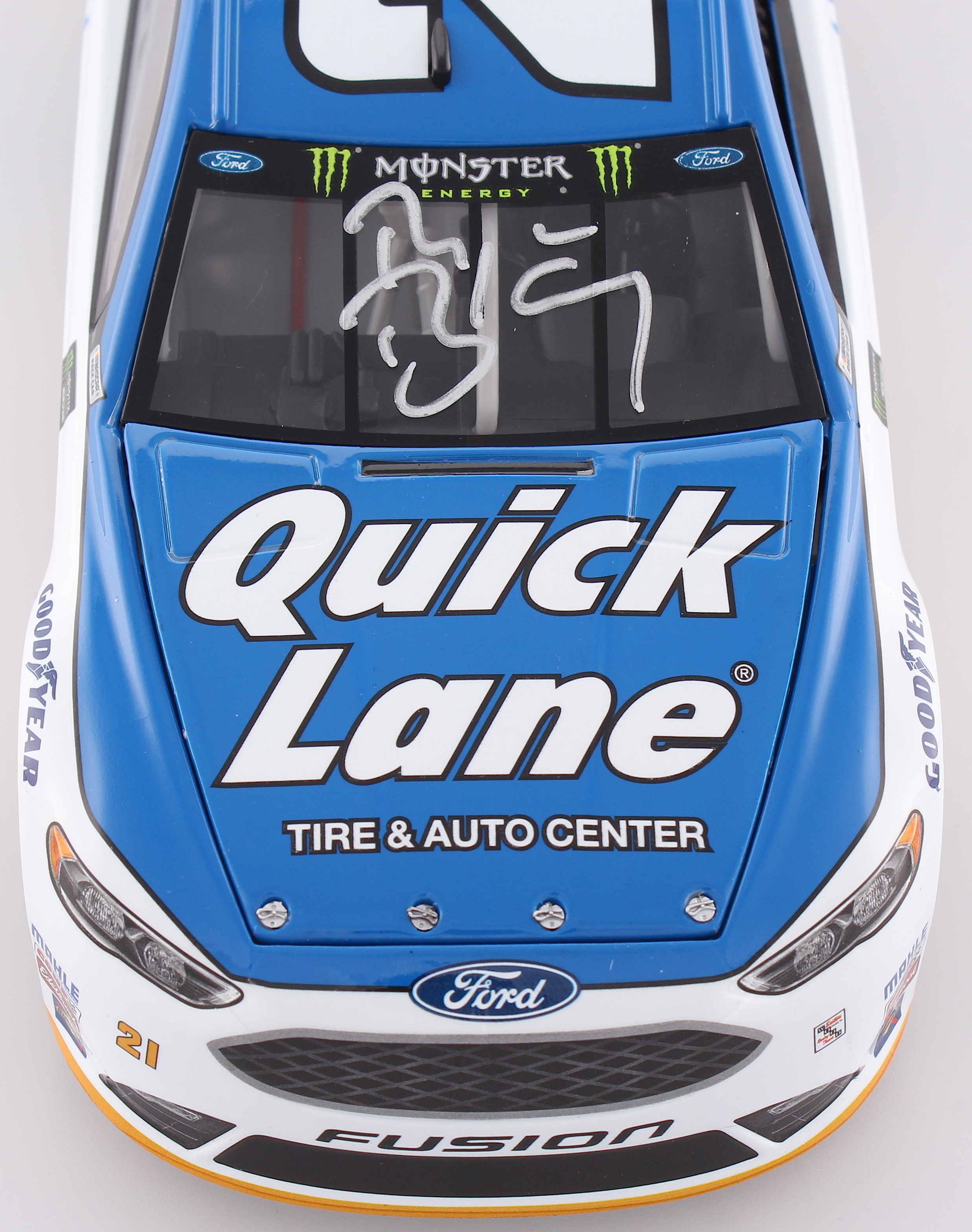 Ryan Blaney Signed 2017 NASCAR #21 Quick Lane 1:24 Premium Action Diecast Car (PA COA)