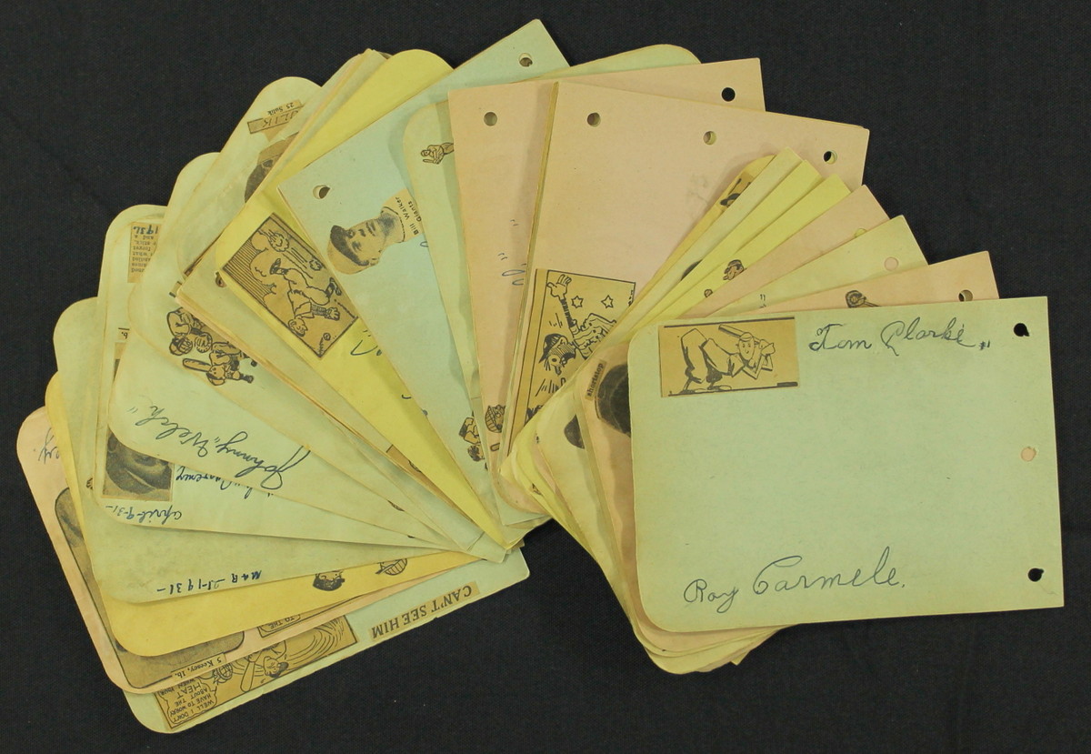 Autographs include Margaret Cavendel, Jules Wera, Babe Pinelli, Ron Penebsky, Red Baldwin, Art Herring, Frank Doljack, Roy Johnson, Vic Sorrel, Jerad Dubrie, Hal Turpin, Kim Douglas, D. Alexander, Gene Desantels, Johnny Stone, Chick Tullis, Gilbert English, CE Withcell, Sam Leslie, Rodolfo Lugue, Jim Mooney, Jack Salverson, Tom Clarke, Roy Carmele, Francis Healey, Len Kalnecke, Lester Bell, Toady English, Harry Taylor, Gussie Suhr, Guy Bush, Bill Jurges, Bob Smith, Pat Malone, George Uhle, Guy Cantrell, Bill Akers, Denny Carroll, Harry Collins, Jerry Donovan, Wally Schang, Jewel Ens, Bill Walker, Fred Lindstrom, William Bill Terry, Sam Gibson, Lon Warneke, Jake May, Burleigh Grimes, Stanley Hack, Chas Gehringer, Marvin Owen, O. Eckheat, Hubby Walker, Lloyd Waner, George Kelly, Waite Hoyt, Bucky Harris, Francis Jackson, Howard Signar, Y. Turner, Dave Bancroft, Elmer Jacobs, Jimmy Zinn, Ernie Sulik, Frankie Crosetti, Johnny Welch, Lance Richbaurg, Johnny Moore, Charlie Root, Jimmy Ike Caveney, Henry Oana, Frazier, Harry Geinberger, Herman Pillette, Lloyd Johnson, Norman Briggs, George Caster, Bil Regan, Johnny Trevnow, Dick Gyselman, Vincent Sherlock, Jim Keesey, Red Wingo, Joe Becker, and Mickey Choder.