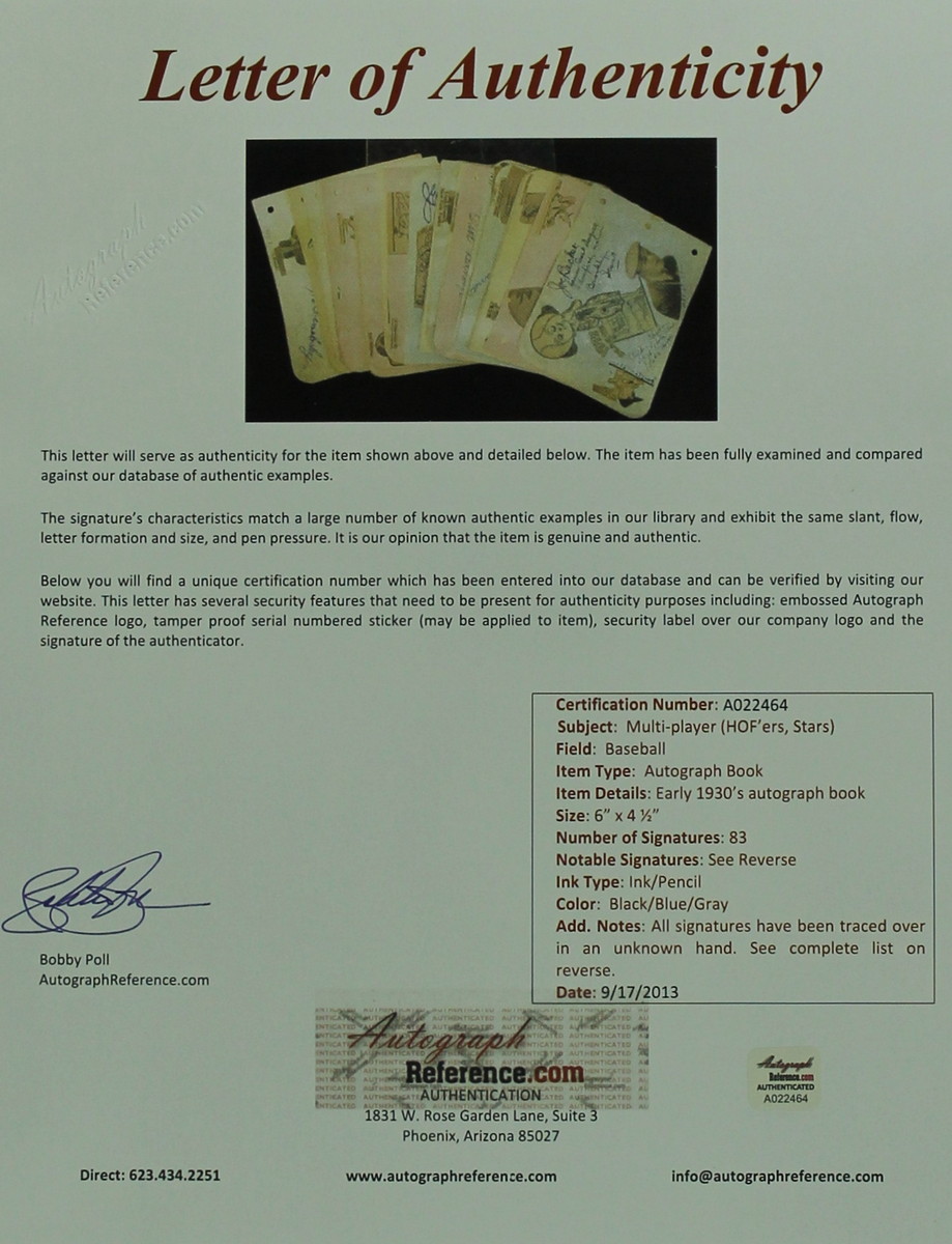 Vintage 1930s Baseball Autograph Book Signed by (83) MLB Legends (Autograph Reference LOA)