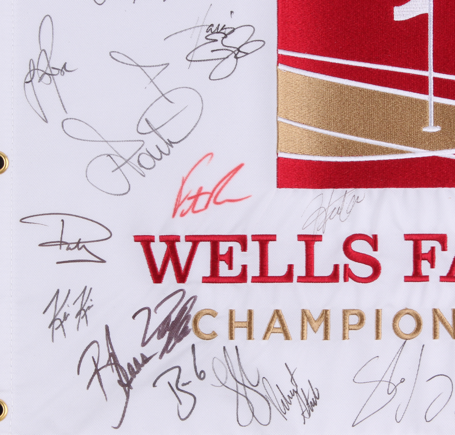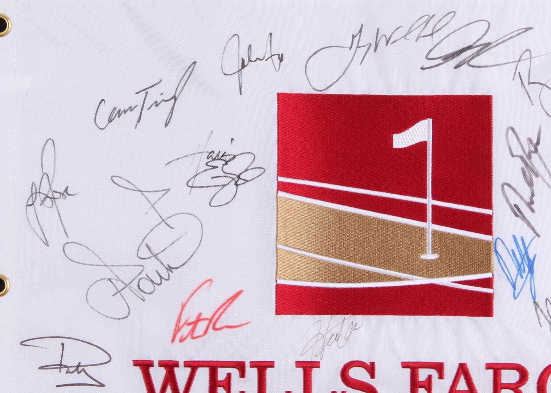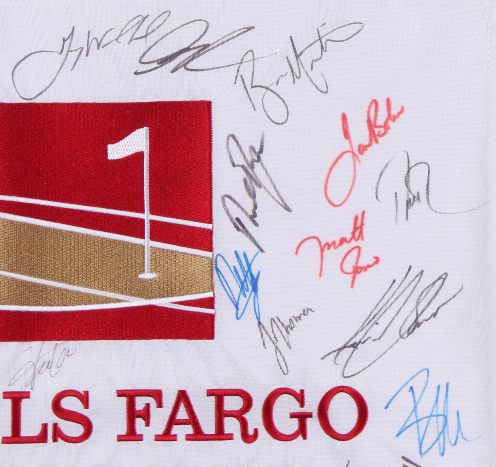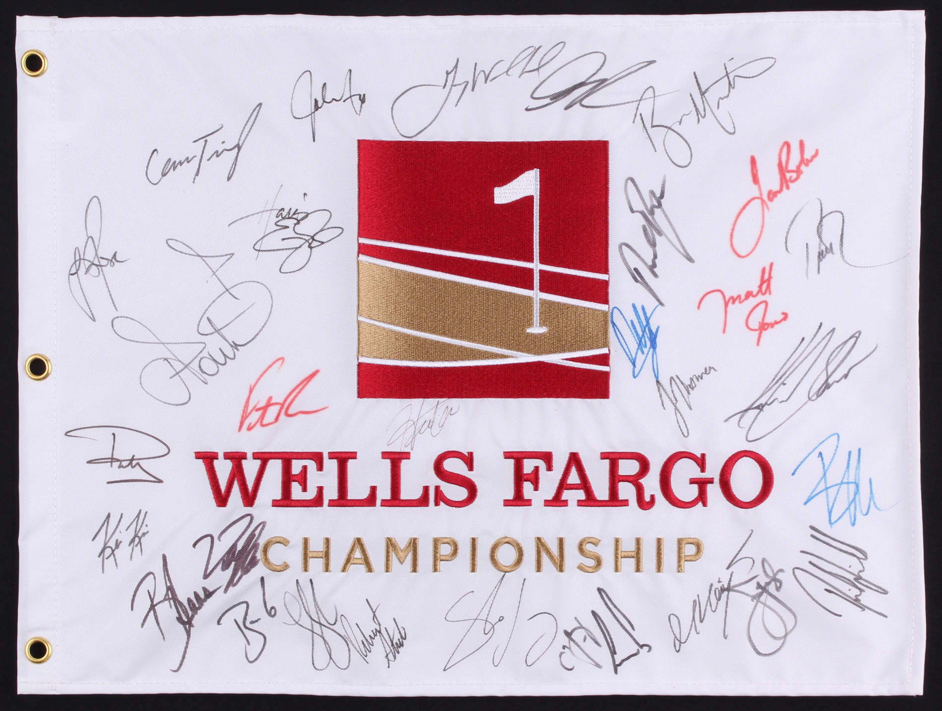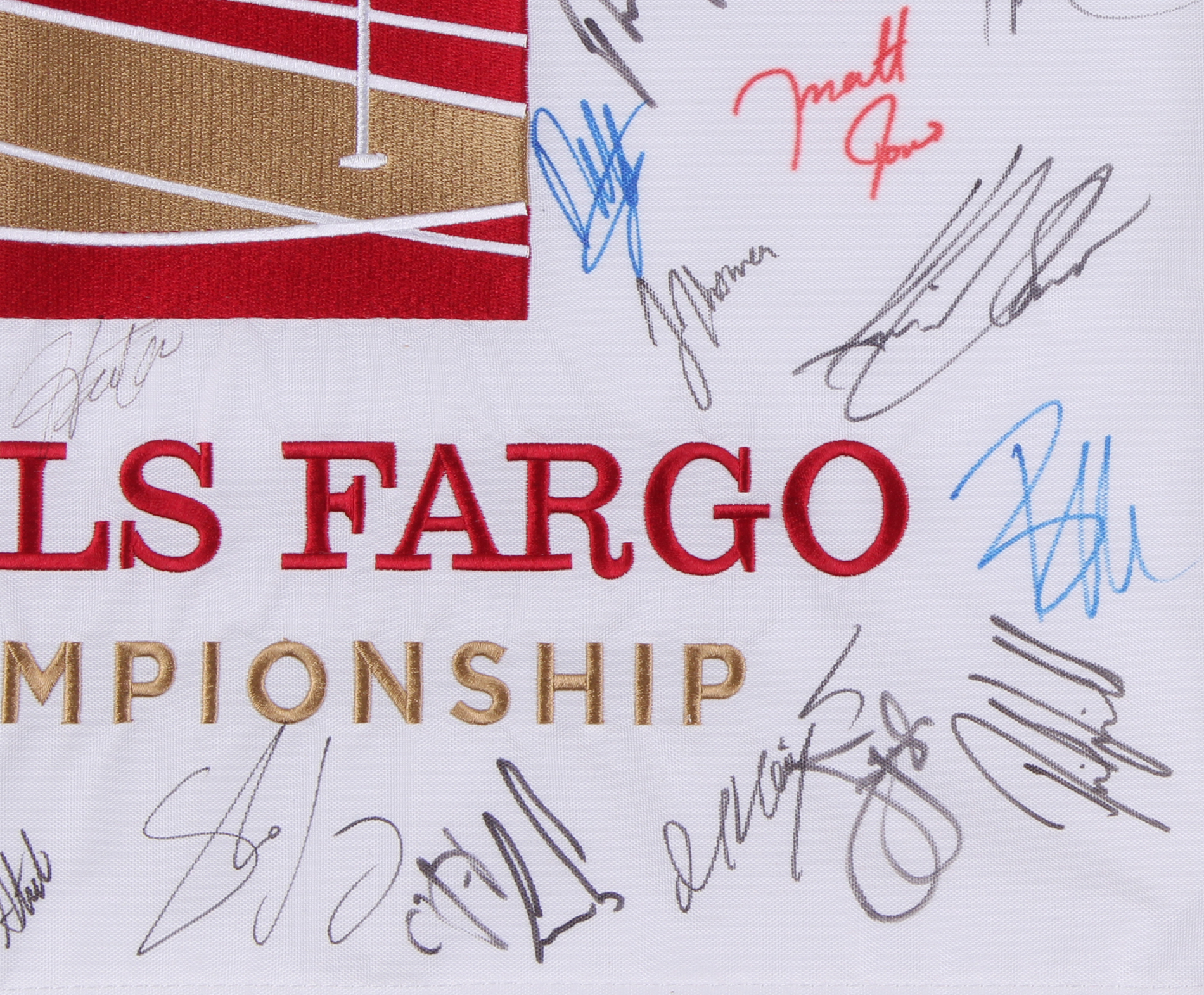 Wells Fargo Championship Golf Pin Flag Signed by (30) with Phil Mickelson, Justin Thomas, Justin Rose, Jim Furyk, Ernie Els (JSA ALOA)