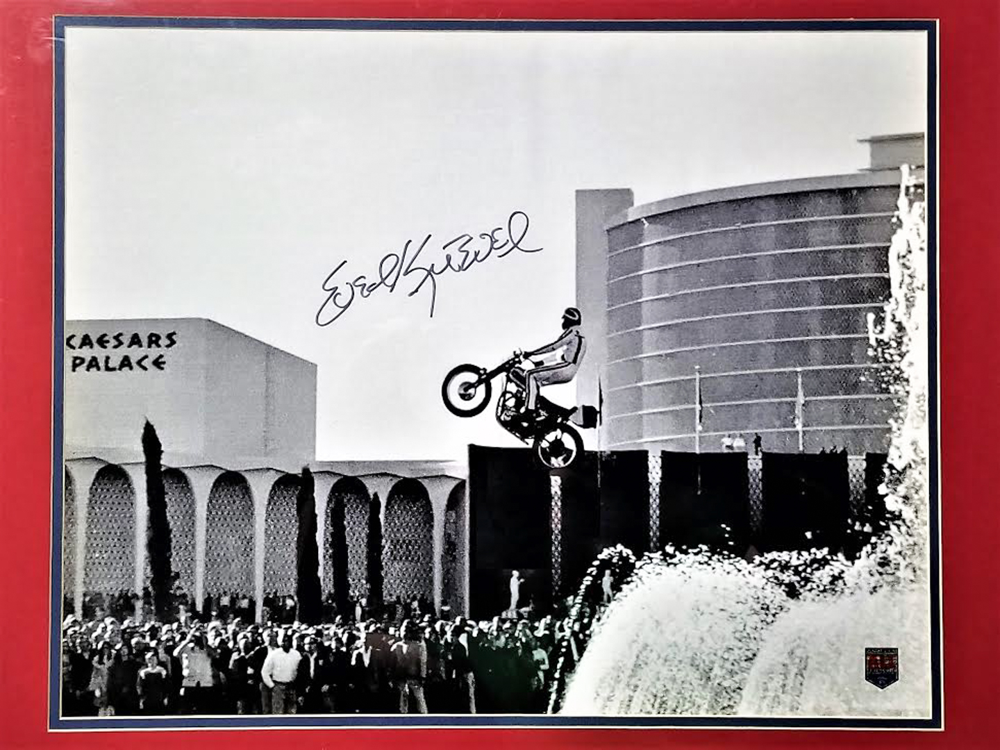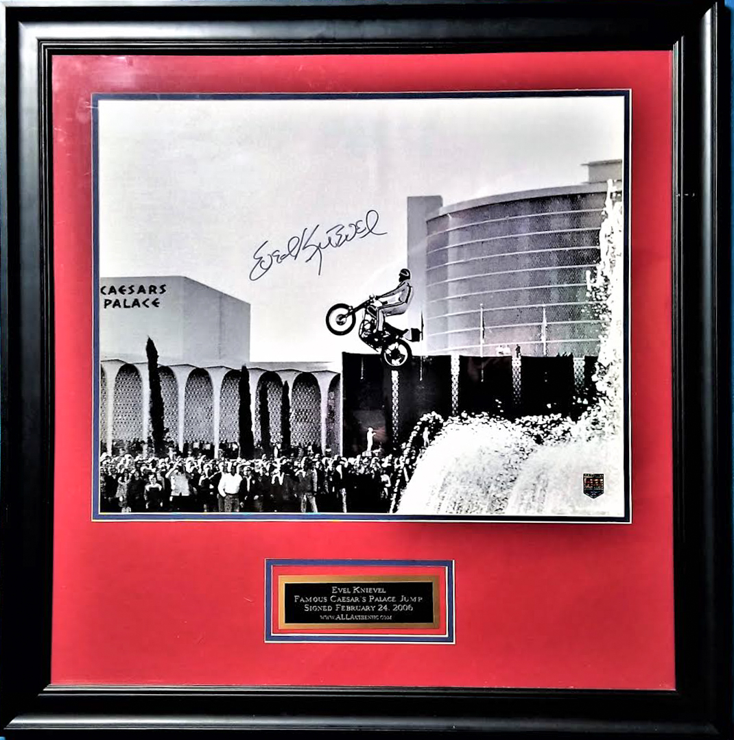Evel Knievel Signed 28x28 "Jump Over Caesar's Palace" Custom Framed Photo Display (All Authentic COA)