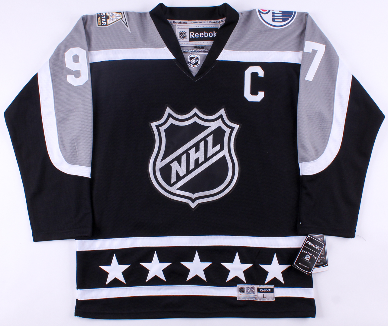 Reebok on-ice style jersey. Everything sewn on size, L. Hand-signed in black felt-tip pen by Connor McDavid (Oilers). Please note, the signature has been personalized.